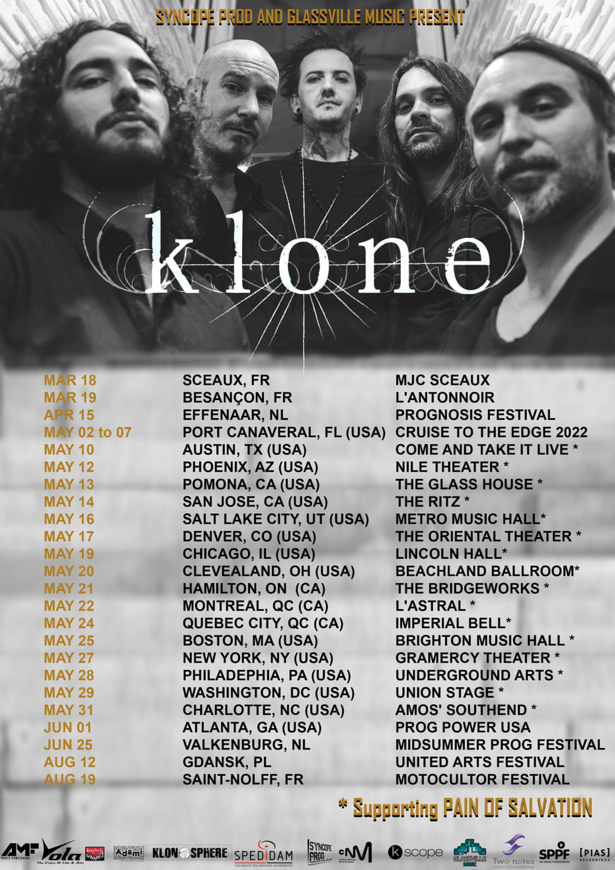Parallèlement, c'est Enzo Alfano, le bassiste live, qui se charge des parties de guitares pour les concerts de KLONE, qui, après avoir participé du 2 au 7 mai au Cruise To The Edge Festival, festival "flottant" au départ de la Floride avec la crème du progressif, de MARILLION à PAIN OF SALVATION, en passant par HAKEN, TRANSATLANTIC et RIVERSIDE pour ne citer qu'eux, assure actuellement la première partie de PAIN OF SALVATION aux Etats-Unis.