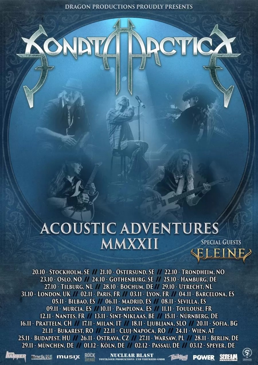 SONATA ARCTICA fera étape en France avec le groupe ELEINE le 2 novembre au Forum de Vauréal, le 3 au CCO de Villeurbanne, le 11 à Toulouse au Metronum et le 12 novembre au Ferrailleur de Nantes.