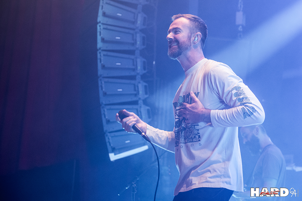 KARNIVOOL n’est probablement pas le plus porté sur l’aspect scénique, mais là encore le travail sur les lights est particulièrement bien réalisé et permet d’accentuer le côté très ambiant du groupe et de se laisser planer accompagnés par la voix de Ian Kenny (qui lui, semble toujours autant dans son monde sur scène). Sans que ce dernier ne soit le plus communicatif, toujours aussi souriant, il adressera quand même quelques mots au public pour lui dire qu’ils sont contents de pouvoir enfin faire cette tournée et être de retour sur Paris (classique, mais ça fait toujours plaisir).
