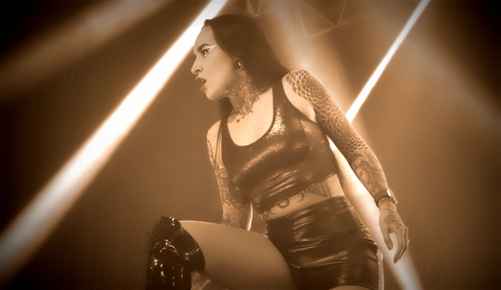 Backdrop avec le symbole de la paix aux contours aiguisés, en jaune et bleu, sous le nom de JINJER dans les mêmes couleurs. Les musiciens arrivent dans un brouhaha enthousiaste qui se transforme en une extase sidérante quand Tatiana apparaît. La jeune femme brille d’un charisme stupéfiant, né de la fusion de sa grâce agressive et de sa rage angélique, à l’image de sa voix qui glisse de la clarté fragile à un chant grave et saturé. Tatouages apparents, maquillage orange fluorescent qui rendent ses yeux incandescents, elle attire tous les regards, captive par sa chorégraphie guerrière ou ses remerciements sincères ; elle reçoit tout sourire les présents des premiers rangs.