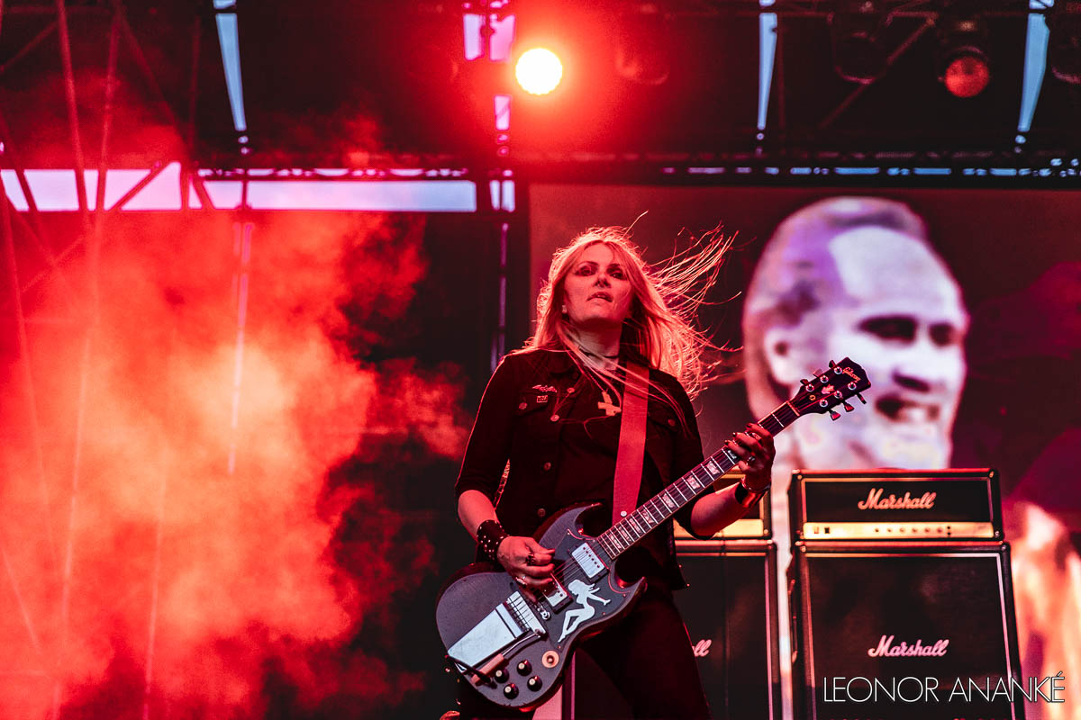 La programmation étant excellente et les concerts ayant tendance à se chevaucher (et particulièrement depuis la veille avec le déprogrammation de tous les groupes devant jouer le jeudi sur la scène fermée), je quitte cependant CARPATHIAN FOREST un peu avant la fin pour réussir à écouter quelques chansons de LUCIFER. Ce fut particulièrement bref mais intense... à peine deux chansons plus tard, la chanteuse nous explique qu’ils vont finalement terminer leur prestation un peu plus tôt que prévu pour être sûrs de pouvoir voir le début de DANZIG sur la Mainstage ! Comme quoi, artistes ou festivaliers, nous sommes finalement tous pareils en festival : on essaye de se faire plaisir avant tout et à chacun ses incontournables ! Les deux chansons vues m’ont quant à elles données envie de revoir les Berlinois et Londoniens, aujourd'hui basés à Stockholm, sur un set un peu plus long.