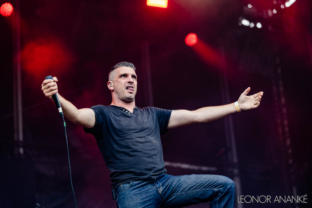 Ce n’est pas tant l’horaire qui m’a fait tiquer, mais la Mainstage qui semblait immense pour le groupe qui a un côté très sobre, minimaliste et assez statique sur scène. Un mélange de dark-rock, post-punk et d’electro très mélancolique, très beau avec des messages forts.