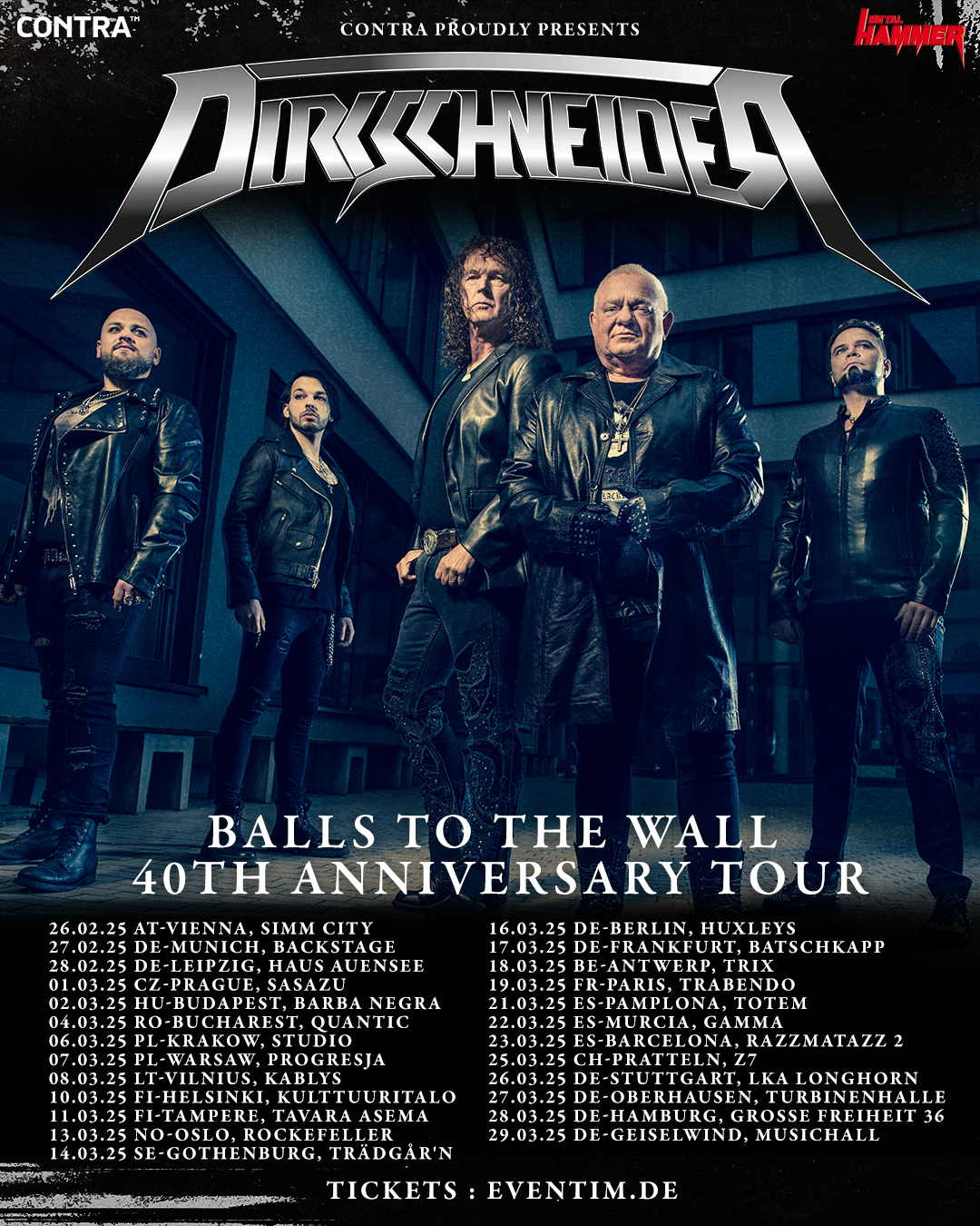 « Balls To The Wall » serait une description appropriée de la présence scénique du groupe, qui est complétée par la batterie de Sven Dirkschneider et un duo de guitaristes talentueux composé d'Andrey Smirnov et de Fabian "Dee" Dammers. Quelle chance que le 40e anniversaire de cet album studio, sorti fin 1983 et qui est le plus vendu et le plus connu d'ACCEPT, soit tombé récemment dans la période faste de U.D.O. / DIRKSCHNEIDER. Bien sûr, le groupe ne veut pas laisser ce jubilé inaperçu : c'est pourquoi DIRKSCHNEIDER est heureux d'annoncer non seulement une performance live complète de « Balls To The Wall » mais aussi une tournée qui célèbrera avec un peu de retard, l'album iconique au printemps 2025 !