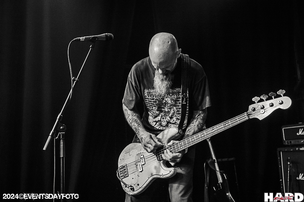 On a retrouvé ainsi ''I Never Sleep'' de RIVER CITY RAPISTS, groupe avec lequel il joua en 1999, ''It's You I Don't Believe'' de DWARVES, ''You Think I Ain't Worth a Dollar, But I Feel Like a Millionaire'' de QUEENS OF THE STONE AGE pour fermer le rappel. Plus personnelle, on trouve aussi ''Invisible Like The Sky'' qu’il avait enregistré en 2010 sur la compilation « Awaken: The Poison Tree Records Sampler » et ré-enregistrée sur « Shooters Bible » en 2020. Sinon, ce sont les albums « Fuck It » (2020), « We Stand Against You » (2023), « Cocaine Rodeo » (2000) et de manière anecdotique « Hell Comes To Your Heart » (2012) avec ''Dead Silence'' qui ont été mis à l’honneur. En premier lieu « Fuck It » avec cinq titres extraits, dont la chanson-titre, ''Listening To The Daze'', ''Nowhere Man'', ''Turboner'' et ''Up Against The Void''. S’en suit « We Stand Against You » qui apporte de la nouveauté avec ''Blast Off'', ''Death March'', ''For a Day'' et ''Rubber Room'' et un retour au source avec ''13th Floor'' en début de prestation suivi plus tard par ''F.Y. I'm Free'' et ''Shawnette''.