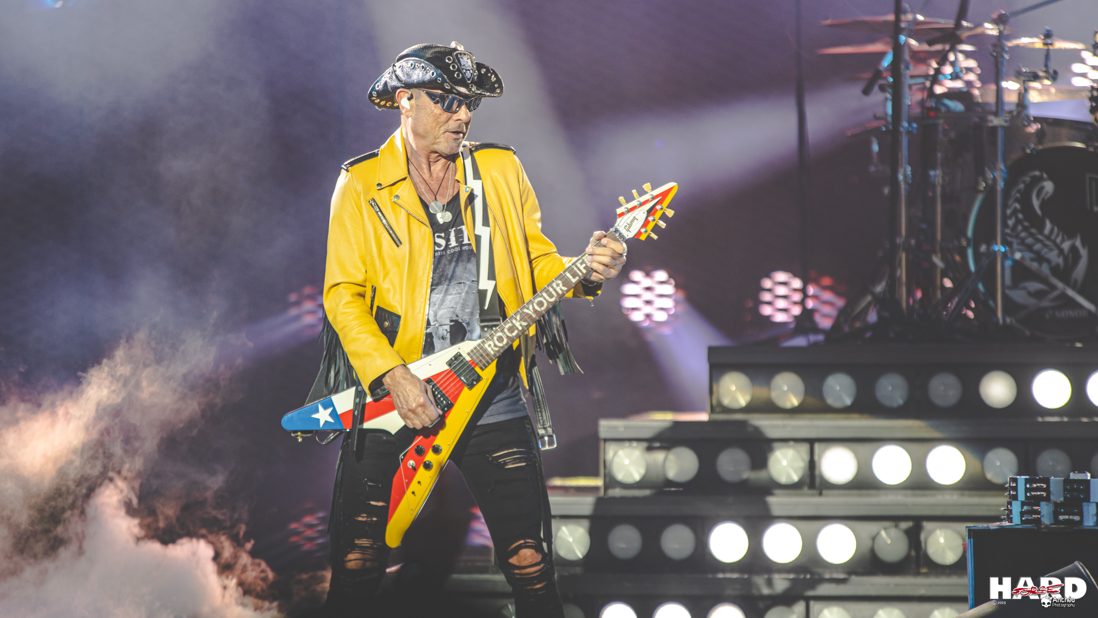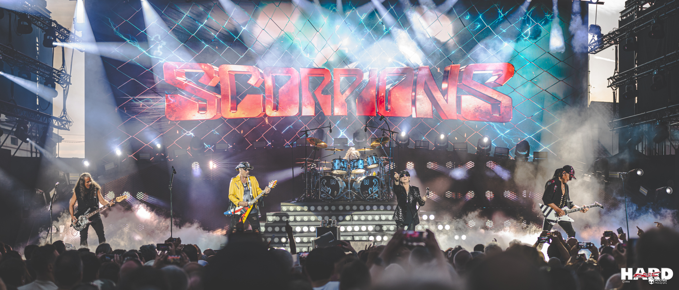 Nous sommes quelques-uns, à chaque concert de SCORPIONS, à repenser aux tournées d'adieu du groupe au début des années 2010. Si, à l'époque, le groupe, si ce n'est son management, avait envie de s'arrêter, force est de constater qu'il a retrouvé son public et une grande force. Certes, à plus de 70 ans, le physique est plus limité que dans les années 80, mais tout de même ! Et c'est loin d'être le cas de tous les musiciens ! SCORPIONS en a sous le pied et donne tout ce soir avec ''Coming Home'' et ''Gas In The Tank'' qui annoncent la couleur. Le show est, comme à son habitude, particulièrement travaillé. Les détails sont soignés, à l'image des écrans sur les côtés de la scène, habillés suivant le titre joué.