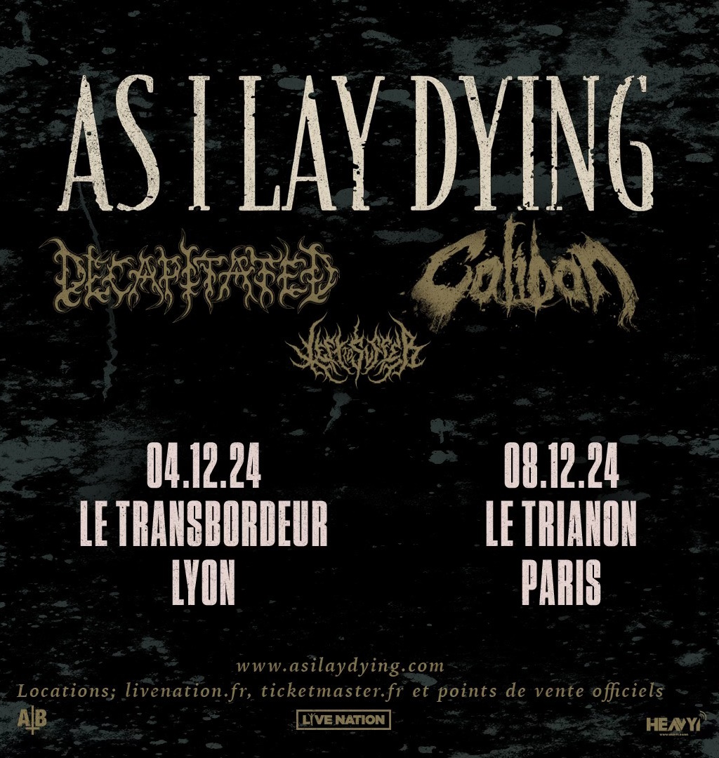 Retrouvez AS I LAY DYING avec CALIBAN, DECAPITATED et OV SULFUR le 4 décembre au Transbordeur de Villeurbanne et le 8 décembre à Paris, Le Trianon en partenariat avec HEAVY1.