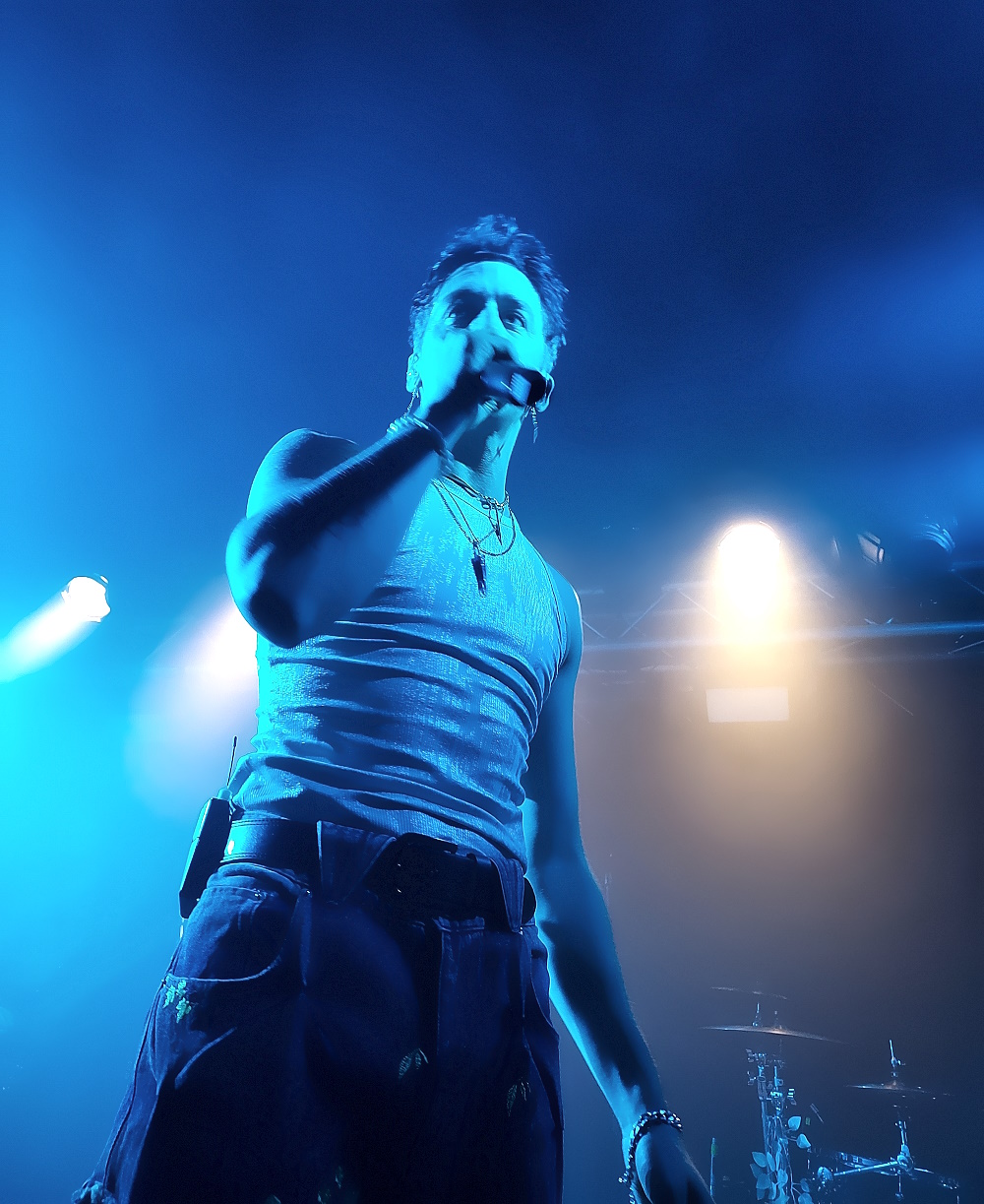 Mais Clem n’est pas le seul à ne pas tenir en place. Ses quatre compères se déchainent tellement sur leurs instruments que l’on se demande comment ces derniers réussissent à résister aux coups de boutoirs dont ils font l’objet. Et comment les cervicales des jeunes gens n’ont pas déjà rendu l’âme ! Mention spéciale à l’excellent Tristan Broggia (LA P’TITE FUMEE), batteur de génie à la technique irréprochable, au toucher gorgé de feeling et de groove, qui, non content de maltraiter sa batterie, assure également les chœurs growlés ! L’excellente mise en son est assurée par le copain Tom Gadonna, propriétaire du studio Axone, également batteur de STÖMB, au CV long comme le bras, qui délaisse cette fois les lights au profit d’Erwan Meritte, qui diffuse des ambiances propices à l’univers foisonnant du groupe. Belle surprise que nous fait le groupe en interprétant un tout nouveau morceau (encore une petite bombe !), "Crystal Tears", que Clem dédicace à son frère. Puis vient le moment le plus émouvant du concert avec Niels et Clem seuls en scène pour offrir une version acoustique sublime de leur tube, "Outlier". Instant de communion vibrante qui file de délectables frissons. Le vocaliste se livre ainsi à nu avec ce morceau très personnel. Le concert est articulé autour de plusieurs extraits de ce poème que l’on a pu entendre en intro. C’est une véritable histoire qui nous est contée ce soir, dont les chansons sont les chapitres. La reprise du "Smells Like Teen Spirit" de NIRVANA, dynamité à la sauce ASHEN, emporte l’adhésion dans une ambiance de folie furieuse. Mais les compos originales du groupe n’ont rien à envier à ce tube méga-planétaire. Que ce soit "Desire", "Sacrifice", avec la participation en studio d’Aaron Matts de TEN56, et dont le guitariste, Quentin Godet, est présent dans la salle (également guitariste chez KADINJA, et à ce propos, vous revenez quand, les gars ?), la superbe "Nowhere", ou l’entrainante "Angel", toutes sont des réussites éclatantes et des preuves du talent exceptionnel de ce groupe perfectionniste, technique et sensible. Bien plus que du metalcore basique, il y a une âme chez ASHEN.