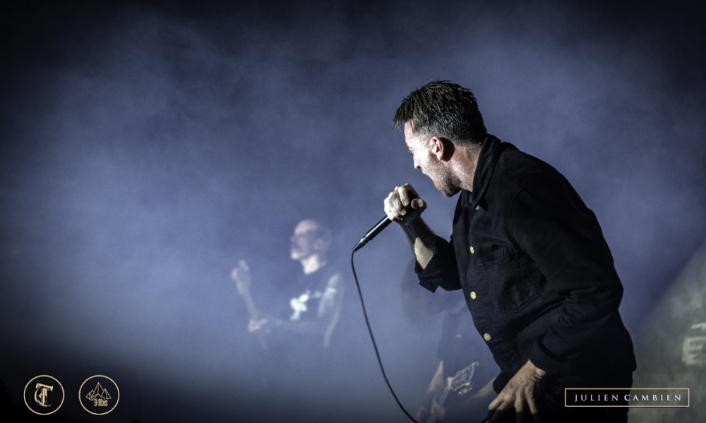 AMENRA (22h25 – 23h35) distille son venin dès les premières secondes du concert. Colin, de dos, à genoux, joue les percussions qui lance "Boden". La tension monte progressivement, insidieuse, vicieuse avant d’exploser en une lourdeur sinistre. Le chanteur, que l’on devine sur un fil prêt à se rompre, entame un dialogue avec les images en noir et blanc – celles du clip – qui défilent sur l’écran. Il semble s’adresser à la jeune femme qui erre dans une forêt mystique, comme une sorcière perdue, la musique lancinante tissant une toile d’angoisse. Les Belges naviguent toujours dans un entre-deux inquiétant, dans un purgatoire où la colère et la haine, tutoient la tristesse et la pureté, où les cris s’apaisent en murmures et narratifs ensorcelants ("De Evenmens"), en mélodies cathartiques (le sublime "Plus Près de Toi" au souffle grandiose, au soufre black metal) sur une musique pesante comme un ciel avant l’orage. Le noir règne en maître, absorbe l’attention d’une salle captivée, capturée, happée par la force de compositions qui ont la beauté de la charogne baudelairienne, celle qui résonne dans la dernière strophe de ce poème :