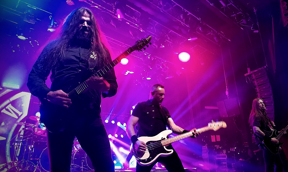 Bien loin de redescendre, la passion va continuer de s’enflammer avec l’arrivée des maîtres de cérémonie. Le décor en fond de scène présente trois écrans disposés à la verticale, intercalés avec des panneaux de spots qui vont diffuser des ambiances lumineuses et colorées de toute beauté. Devant ce décor se dresse une plateforme sur laquelle se logent la batterie de Joakim Strandberg-Nilsson et les claviers de Martin Brändström. C’est sur "The Last Imagination" issu de « Endtime Signals » (qui sera mis à l’honneur ce soir avec pas moins de six extraits) que DARK TRANQUILLITY fait son entrée, et le public qui ne s’est pas encore remis du passage de MOONSPELL exulte de plus belle. A tel point que les musiciens, sitôt après le deuxième morceau, "Nothing To No One" s’interrompent un moment, incrédules et très émus, pour remercier le public parisien de s’être déplacé en masse et de leur offrir un tel accueil. Une relation passionnée et passionnelle entre la France et DARK TRANQUILLITY qui perdure depuis plusieurs années. Mikael Stanne, le charismatique et si attachant chanteur nous promet une set-list aux petits oignons, avec des nouveautés, des incontournables et des raretés. Effectivement, la géniale "Wayward Eyes" embarque dans sa mélodie un élan de dynamisme supplémentaire, suivi d’une séance de cardio dans la fosse sur la très speed "Unforgivable". Place ensuite à la rareté, un morceau que le frontman déclare n’avoir pas joué depuis des siècles, "Hours Passed In Exile", tiré de « Damage Done » (2002), puis vient le très mélodique et prenant "The Dark Unbroken" et son refrain irrésistible. Encore de belles baffes avec "Final Resistance" et "Cathode Ray Sunshine". Le groupe est dans une forme olympique, et si Mikael Stanne attire tous les regards avec son énergie et son sourire, il ne faut pas pour autant oublier le travail formidable de ses compagnons de scène, tant aux guitares (extraordinaire Johan Reinholdz qui reproduit fidèlement LE son de DARK TRANQUILLITY), qu’à la section rythmique (les discrets Christian Jansson à la basse et Joakim Strandberg Nilsson à la batterie n’en demeure pas moins présents et fournissent l’assise nécessaire au death mélodique du groupe) et les claviers indispensables de Martin Brändström, grand pourvoyeur de mélodies classieuses et accrocheuses.
