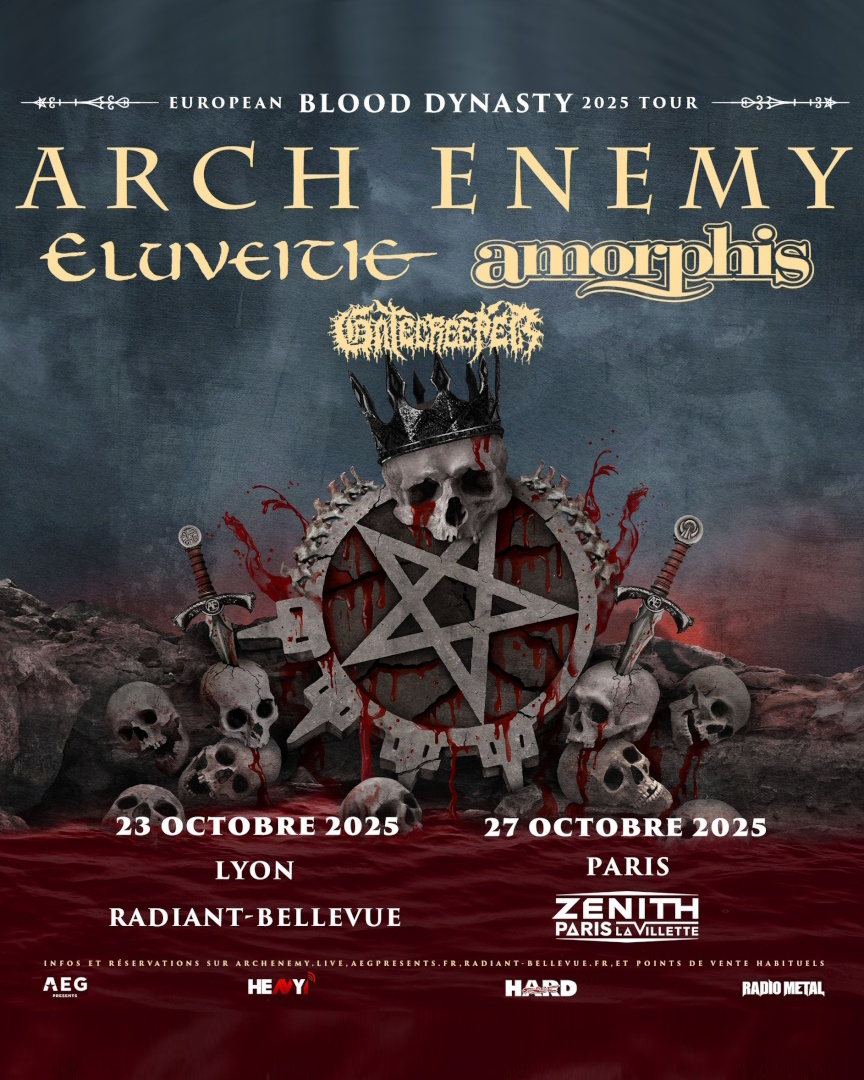 Précommandez votre exemplaire de « Blood Dynasty » sur ce lien et retrouvez ARCH ENEMY avec ELUVEITIE, AMORPHIS et GATECREEPER le 23 octobre 2025 Au Radiant Bellevue de Lyon et le 27 octobre 2025 au Zénith de Paris.