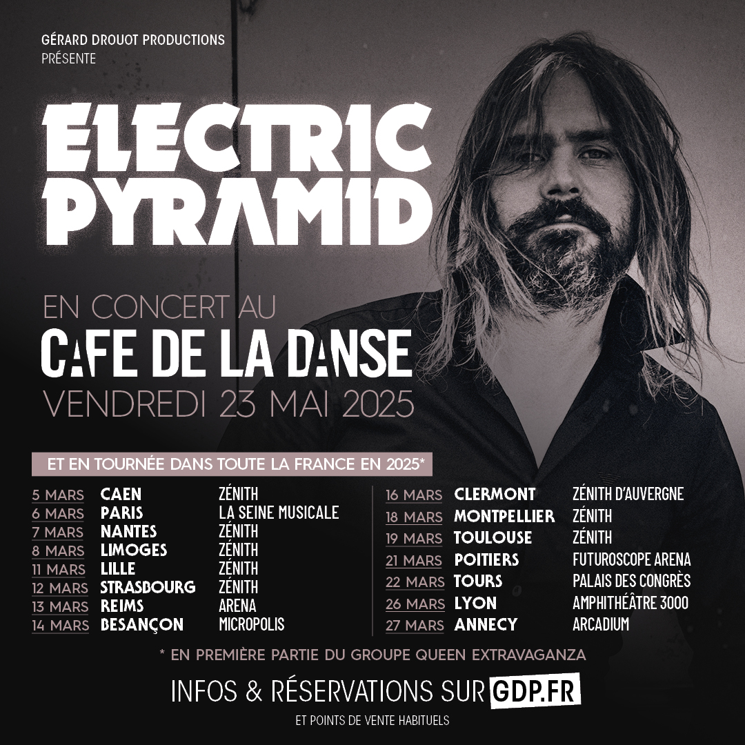 Le lancement de ce nouvel album coïncidera avec une tournée qui débutera le 5 mars prochain en première partie du spectacle ''QUEEN Extravaganza'', validé par Roger Taylor & Brian May. Grâce à ces 16 dates à travers toute la France, cette série de concerts permettra à ELECTRIC PYRAMID de se produire devant plus de 30 000 amoureux de musique. Chaque soir, ces derniers pourront même se procurer les versions CD ou vinyle de « Lion ».