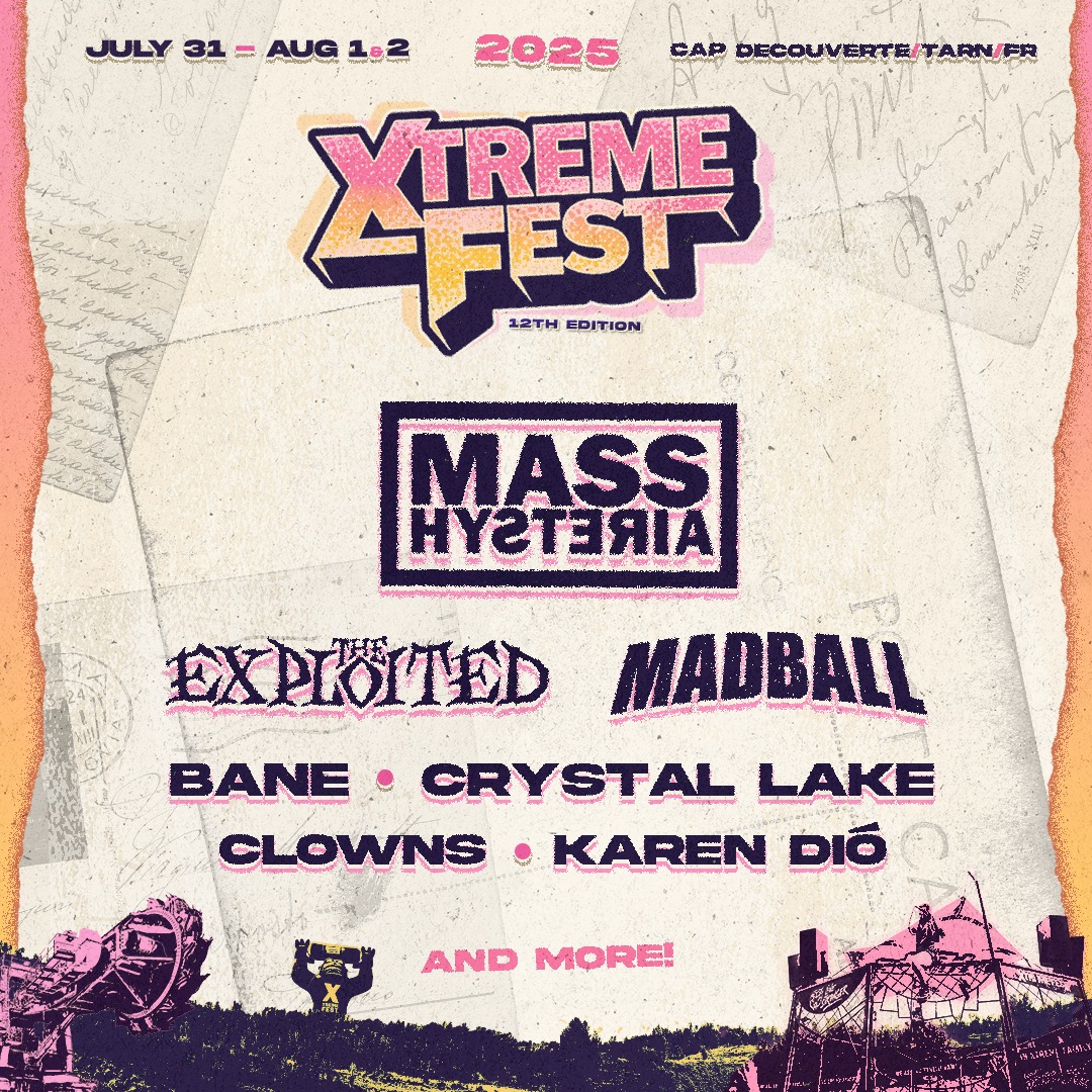 L’Xtreme Fest vous offre une double dose de hardcore et de metalcore avant les fêtes de fin d'année avec l'annonce de deux nouveaux artistes à découvrir lors de l’édition 2025 : Après MASS HYSTERIA, THE EXPLOITED, BANE, CLOWNS et Karen Dió, MADBALL et CRYSTAL LAKE rejoignent l'affiche du festival qui se déroulera les 31 juillet, 1er et 2 août 2025.