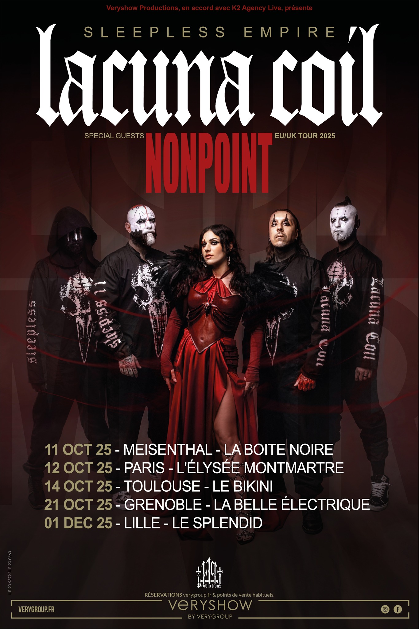 « Sleepless Empire » est le 10e album studio de LACUNA COIL. Il sortira ce vendredi 14 février chez Century Media Records. Il s'agit du premier album studio après le remake de « Comalies XX », paru en 2022. Le nouvel album comprend 11 nouvelles chansons, chacune étant une bande-son richement nuancée d'une époque et d'un lieu spécifiques. Avec « Sleepless Empire », cet endroit est sombre, cinématique et sans aucun doute fidèle aux caractéristiques uniques qui ont permis à LACUNA COIL de faire une entrée remarquée dans les annales de l'univers heavy metal.