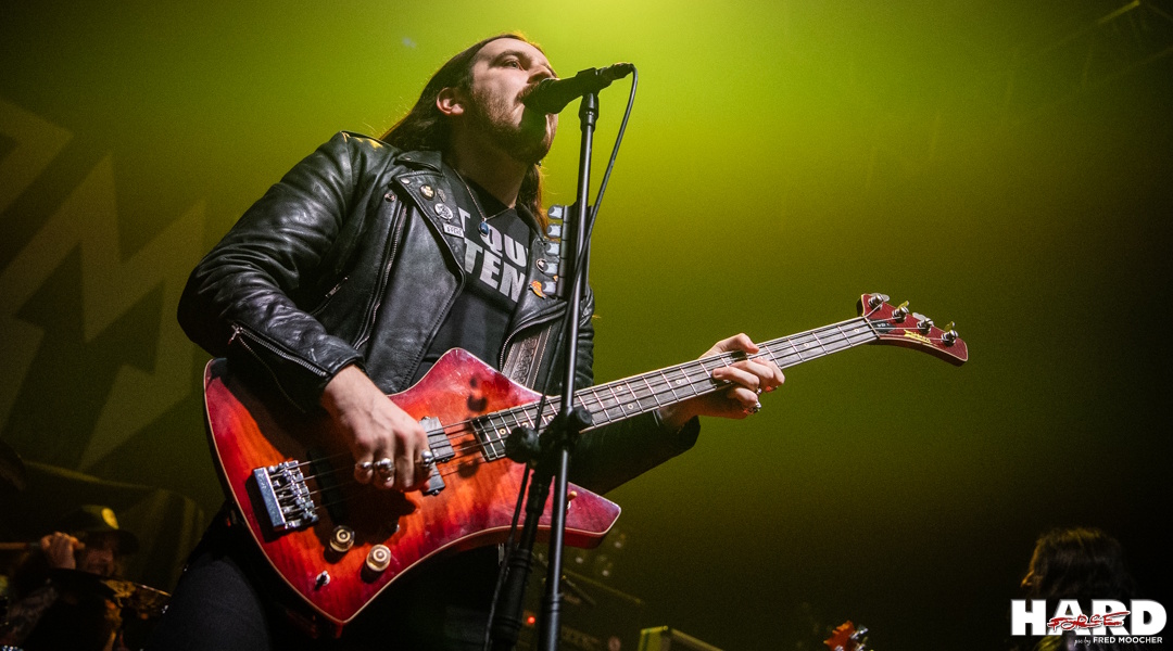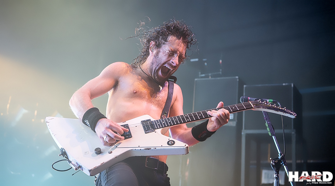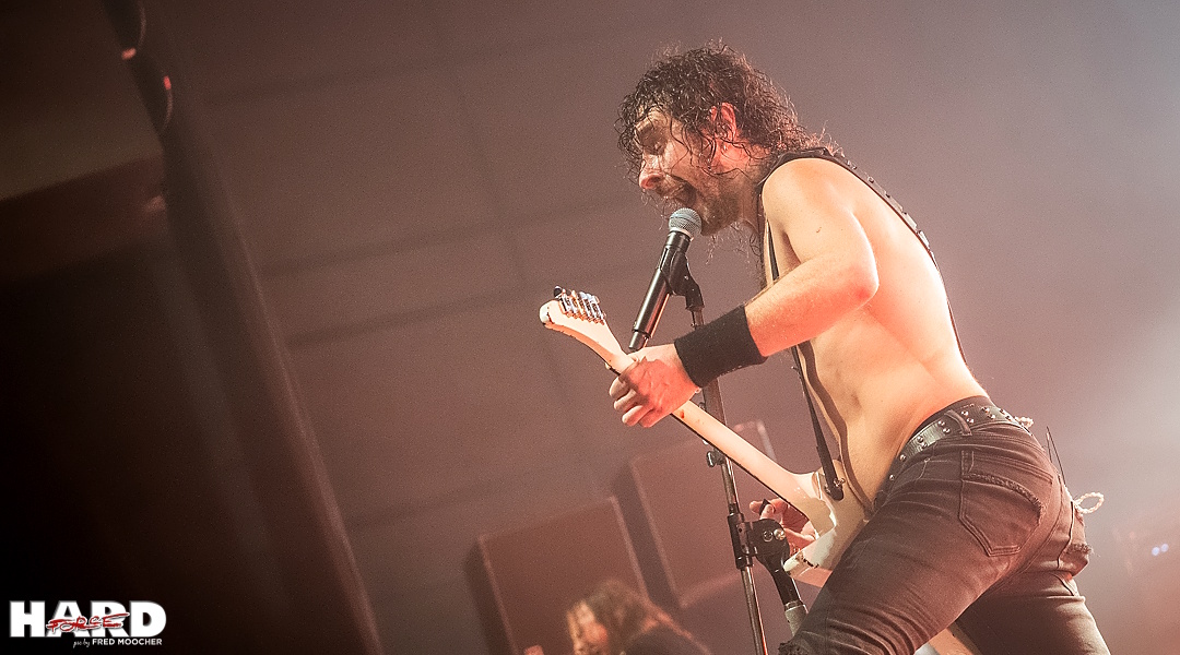 Mais si la vigueur de leurs sets a toujours fait l'identité d'AIRBOURNE, les Australiens n'oublient pas non plus d'offrir un joli moment d'émotions à leurs fans (et au passage un instant de répit bienvenu). Le temps d'un bel hommage à Lemmy (bien aidé par le drapeau tendu par un fan présent dès le début de soirée au premier rang), à grands coups de whisky-coca concoctés par le chef O'Keefe et distribués à chaque membre de l'escouade. L'occasion également pour chacun de recevoir une ovation méritée tout en jouant bien sûr "It's All for Rock'n'Roll". Le show peut alors reprendre de plus belle avec "Stand Up For Rock'n'Roll". Cette fois le Bikini ne tient plus en place et le pogo traverse la salle de part en part.