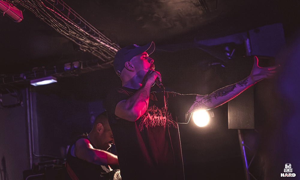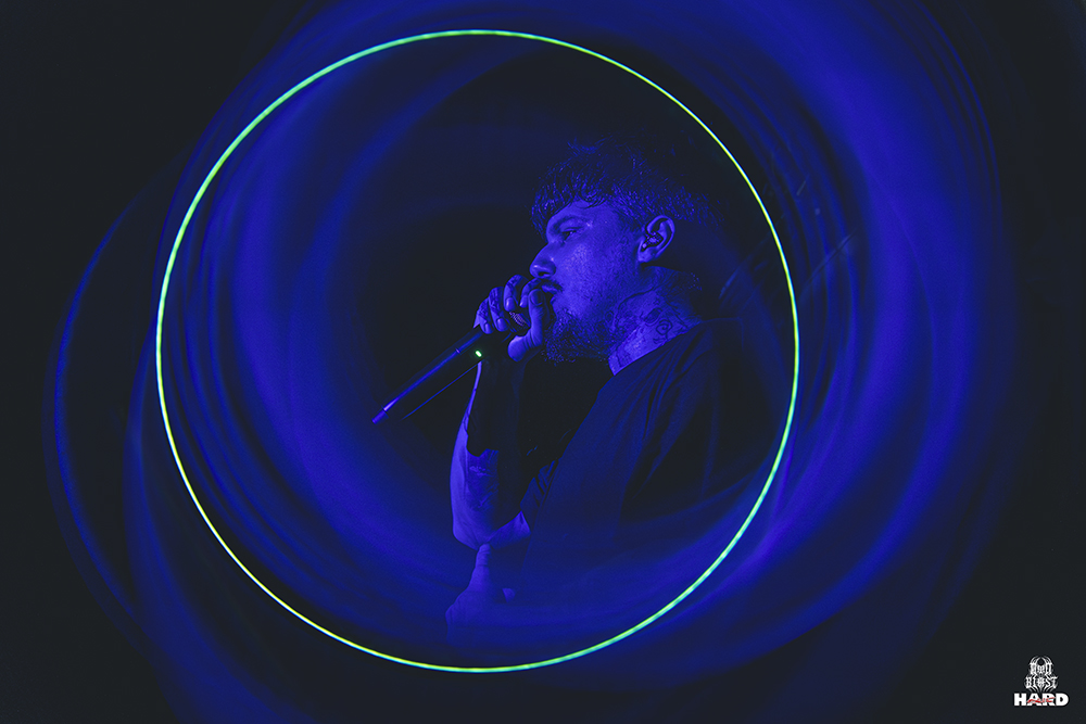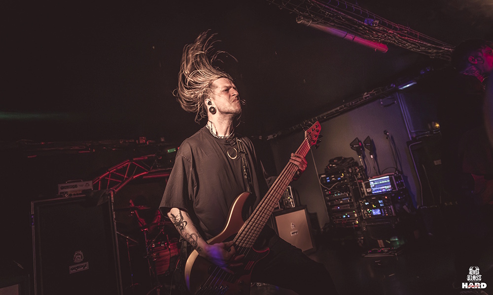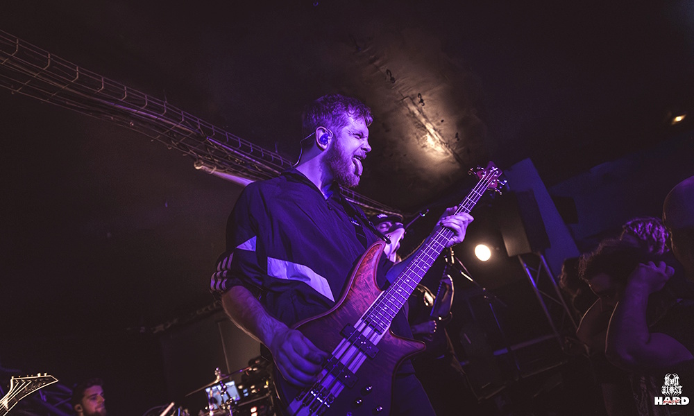 C’est HARBINGER qui ouvre le bal avec son deathcore tout droit venu du Royaume-Uni. Officiant depuis 2015, les Britanniques proposent un deathcore assez traditionnel et efficace. Déjà deux albums et quatre EPs à leur actif, on les avait reçus en France il y a 3 ans. Pour ma part c’est la première fois que je les vois et je ne connaissais pas vraiment leur musique. Ils mettent immédiatement une bonne ambiance dans la salle avec un public qui se réveille doucement. Le groupe communique pas mal avec lui et la salle renforce cette proximité. Ils ne sont pas très fans des lumières du Glazart et je ne peux leur en vouloir quand ils demandent à éteindre les spots de façade aveuglants. Même si je verse une petite larme en montant toujours plus haut les ISO de mon appareil pour avoir quelque chose à photographier. L’ambiance est un peu trop tamisée à mon goût. Niveau son, la batterie est un peu forte et étouffe le reste. Le chant clair et la guitare-lead sont vraiment trop bas ce qui est fort dommage. En revanche, le scream est très cool avec une belle tenue et des growls vraiment sympas. Et leur jeu de scène, leur complicité dynamisent le public malgré leur set très court. Une belle découverte en tout cas !