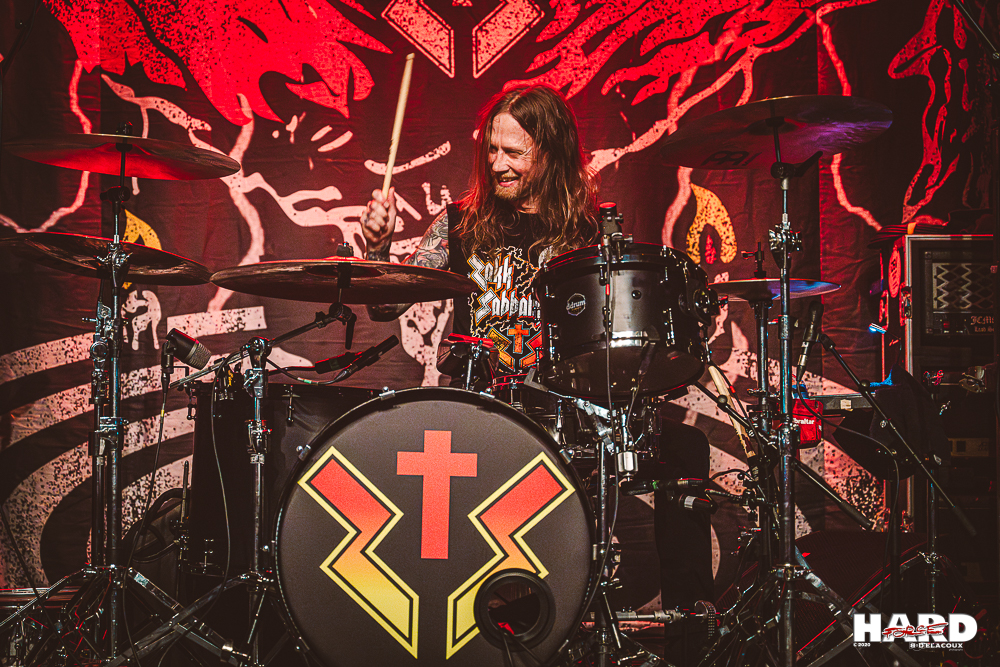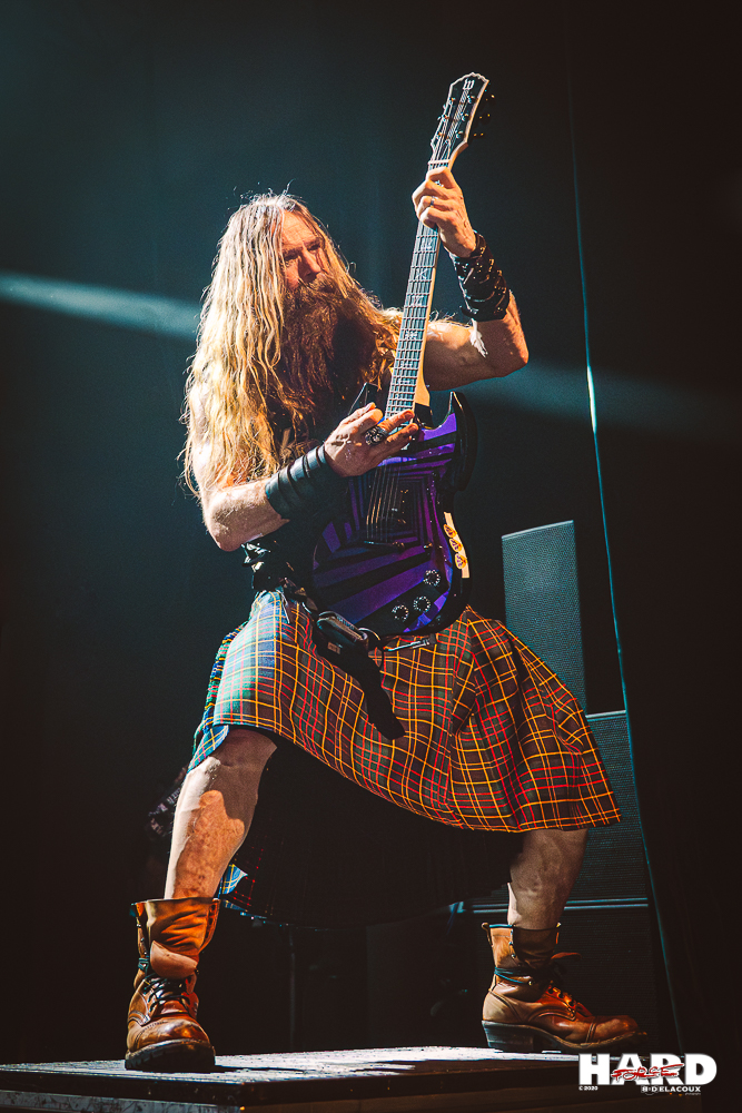 C’est d’ailleurs avec une certaine consistance que démarrent les hostilités, au son de "Supertzar", drôle de pièce instrumentale et opératique tirée de « Sabotage » qui ouvrait de la sorte la dernière tournée d’époque, "Never Say Die" - et ça, ça pose une ambiance : le public exulte, encore d’un cran lorsque leur guitar-hero favori s’empare de la scène avec l’envergure qui le caractérise, kilt de rigueur et masse de viking tous biceps saillants, devant un backdrop des plus kitsch, vintage et cool possibles. Zakk Wylde est donc bien là, tant pour asperger avec zèle tous ses adeptes de pentatoniques goulues, que pour rendre amoureusement hommage aux Dieux qui nous réunissent tous ce soir - BLACK SABBATH.