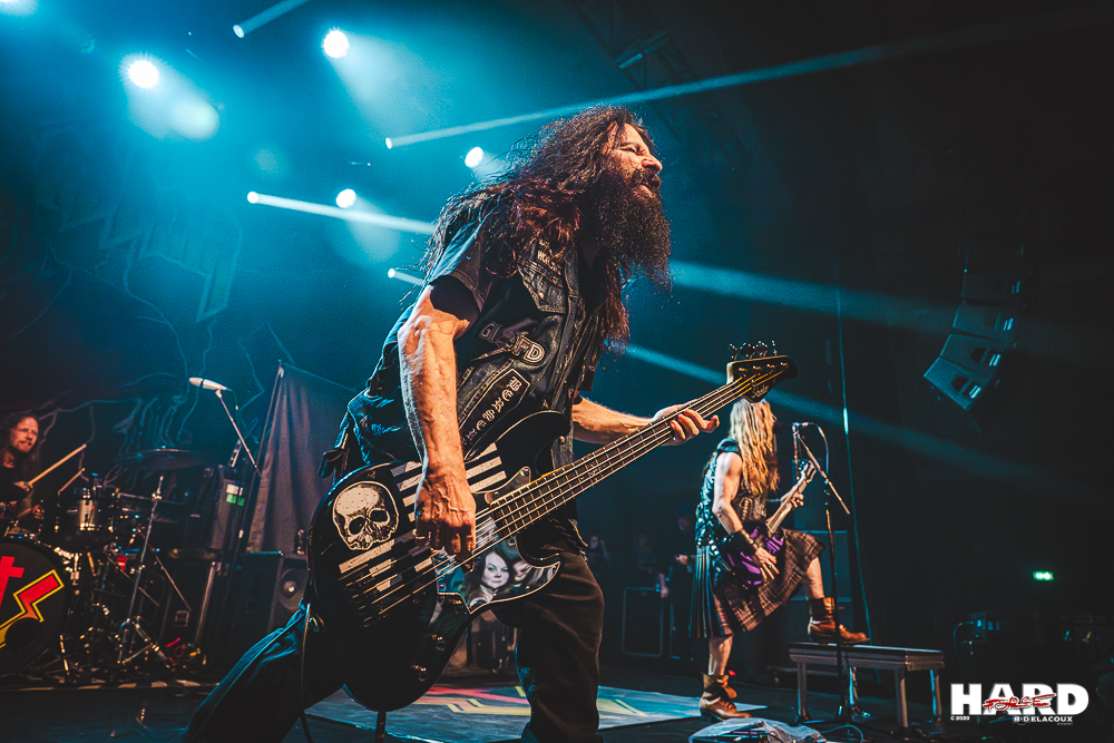 Passée cette (longue) observation qui se confirmera toutefois, hélas, pendant tout le set, forcément arrive-t-on néanmoins par être happé par la puissance évocatrice de ce patrimoine, et de ses riffs aux vertus transcendantales. Malgré un son bien trop moyen, ZAKK SABBATH a toutefois parfaitement dosé sa set-list, rodée, entre hymnes incontournables et morceaux plus confidentiels parfois peu ou jamais joués par la formation originale - et qui reste strictement circonscrite aux quatre premiers albums de SABBATH, entre 1970 et 1972. Mention particulière à « Volume 4 » qui occupe donc une grosse partie du début du set avec l’enchaînement "Supernaut" et "Snowblind" (où les « cocaaaaaiiiine » hystériques d’antan sont cependant remplacés par des « oh yeeeeeaaaah » inoffensifs - révisionnisme, signé des temps ?), puis aussitôt "Under The Sun" et "Tomorrow’s Dream" - et qui augurent peut-être le futur enregistrement de ce quatrième classique. Le reste n’est donc qu’un pot-pourri (comme on disait du temps du music-hall) des trois premiers - avec des petits bonheurs aléatoires comme "Wicked World" et "Lord Of This World". Mais parmi les moments forts, citons cette interprétation forcément méga heavy du monstre "Into The Void", dont les riffs ont définitivement bâti plus de cinquante ans de heavy metal, au point d’en être devenu une définition - et qui a forcément excité tous les convives, jubilant sous cet écrasement noir. Et c’est au bout du plus méconnu mais jouissif "Behind The Wall Of Sleep" que JD a pu tenter faire montre de ses talents en reproduisant à sa sauce le solo de basse de Geezer Butler qui précède l’intro, fédératrice et gorgée de wah-wah, de "N.I.B.", classique suprême repris à gorge déployée par tout l’Elysée Montmartre.