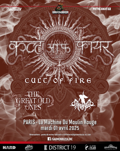 Histoire de bien commencer un mois d’avril qui s’annonce plutôt chargé – et de faire un grand écart musical avec le concert de LIMP BIZKIT prévu le lendemain – c’est parti pour un très beau plateau concocté par Garmonbozia qui réunit CULT OF FIRE et THE GREAT OLD ONES, le tout avec CARONTE en première partie... de quoi assurer un bon moment !