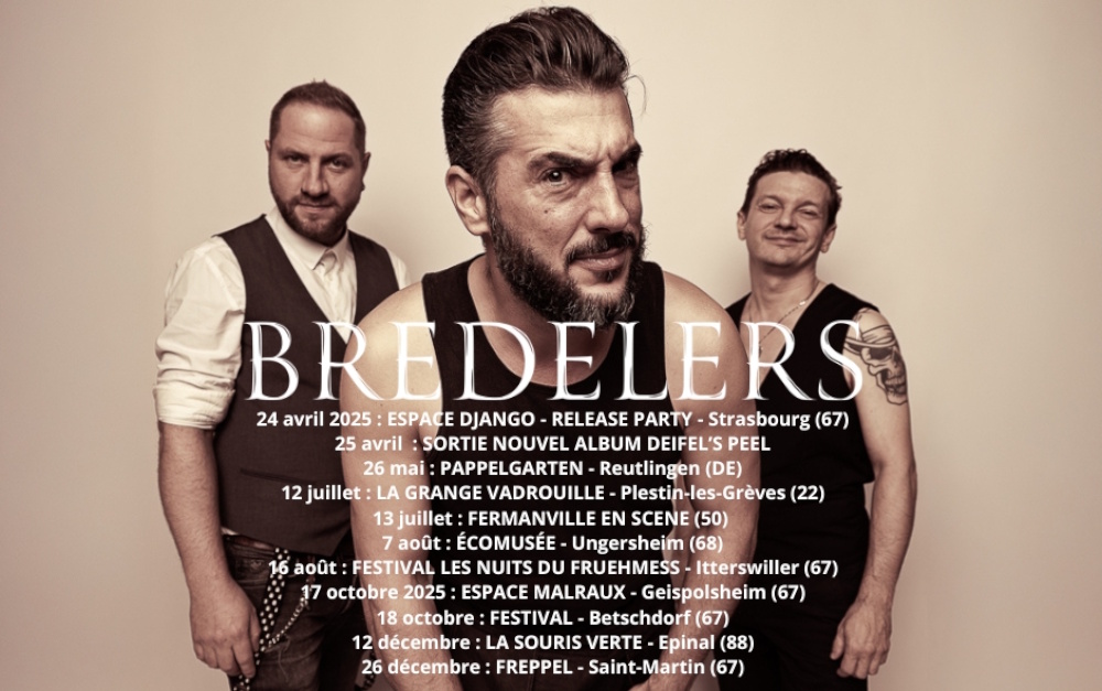Groupe de rock alsacien fondé à Strasbourg en 2004, réputé pour son style unique mêlant rock puissant et humour décalé, BREDELERS est de retour ! Avec quatre albums à son actif vendus à des milliers d’exemplaires et plus de 700 concerts à travers la France, l'Europe et les États-Unis, le groupe n'a cessé de se réinventer. Initialement ancré dans un rock festif et folk, le son de BREDELERS a évolué vers un style plus incisif et contemporain, intégrant des influences hard rock, punk, et neo-metal, tout en conservant son lien profond avec la culture alsacienne.