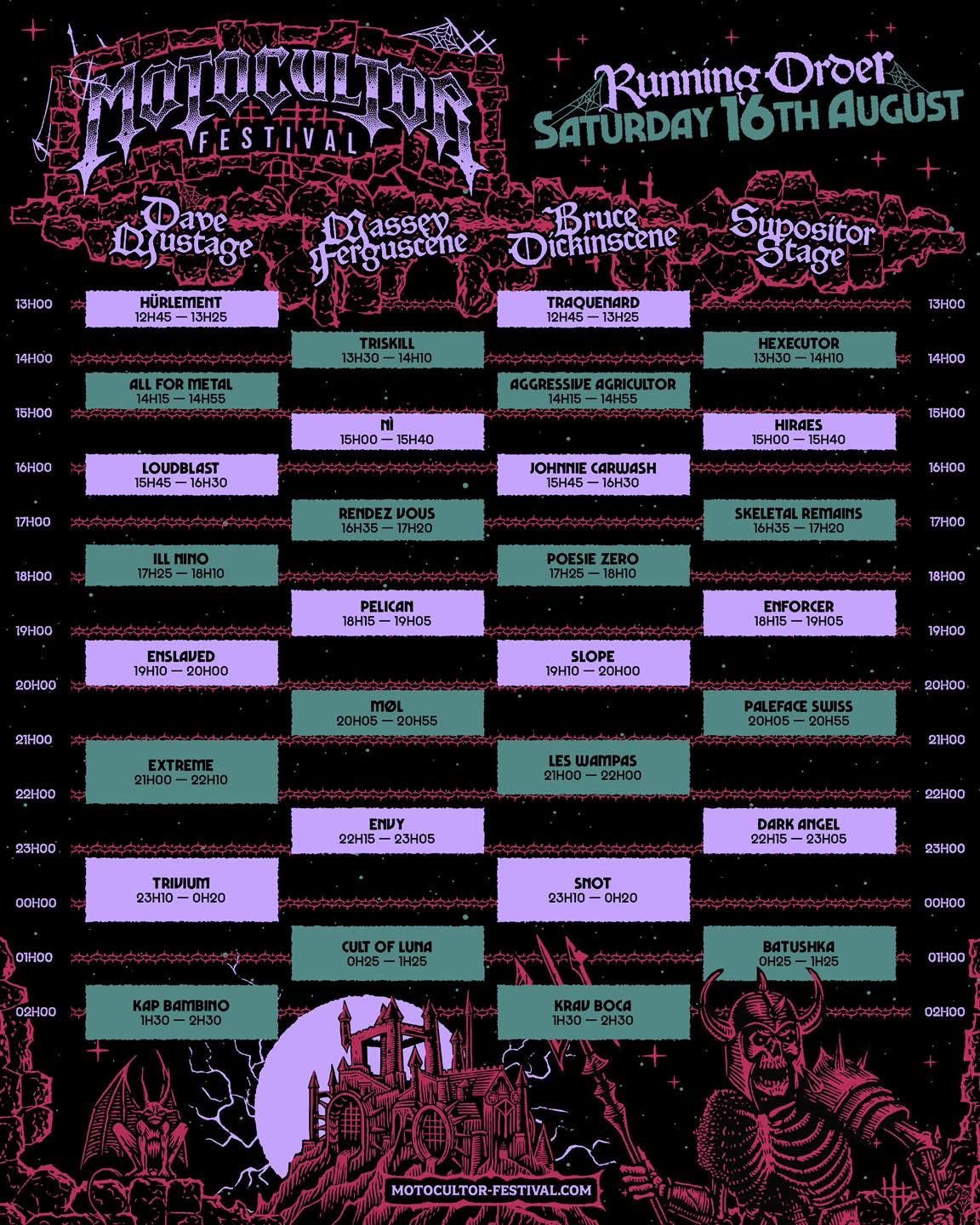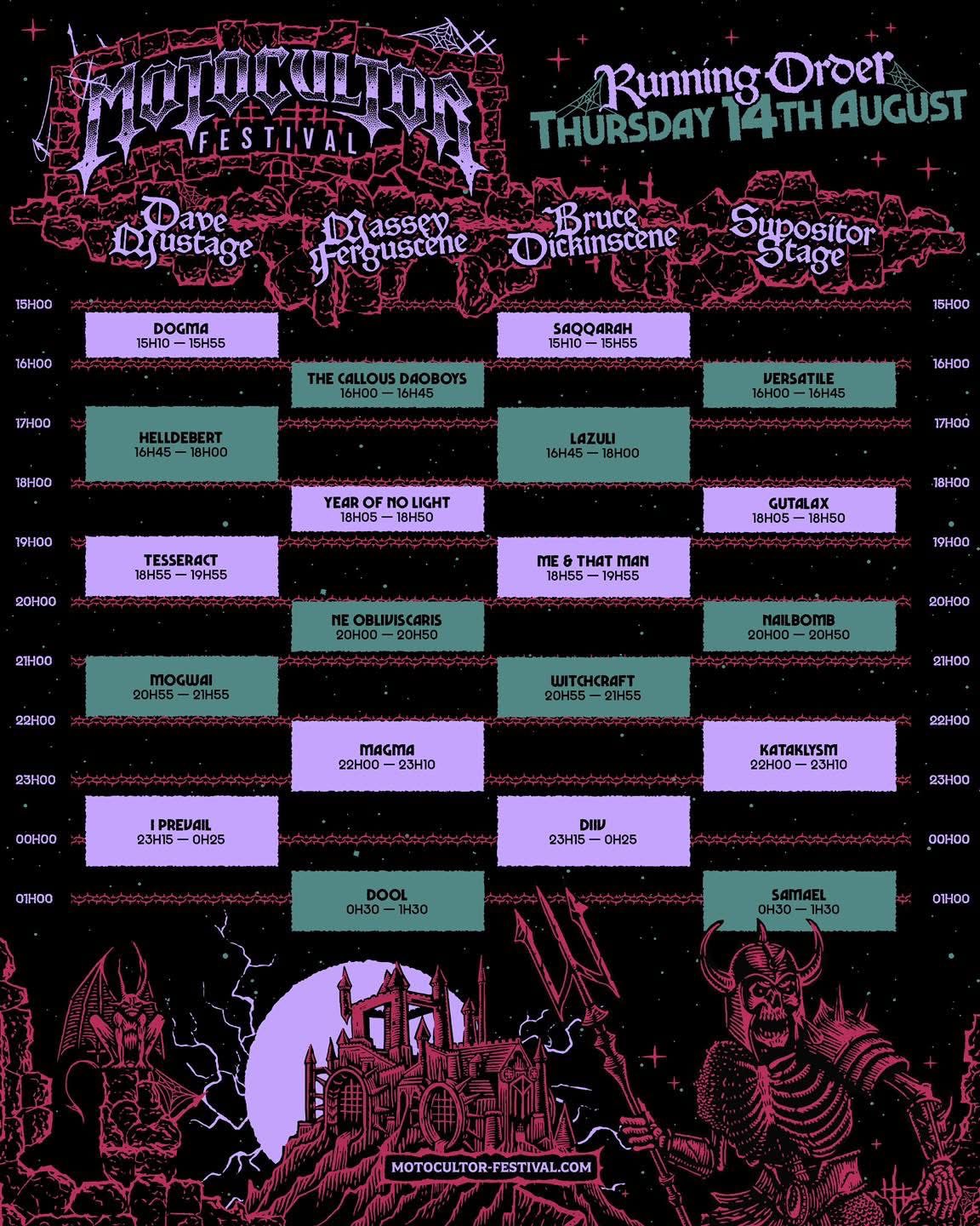 Le Motocultor Festival a annoncé 3 nouveaux groupes qui complètent l'affiche du festival qui aura lieu du 14 au 17 août prochains à Carhaix, ainsi que le running order dont les visuels par jour sont à retrouver plus bas.