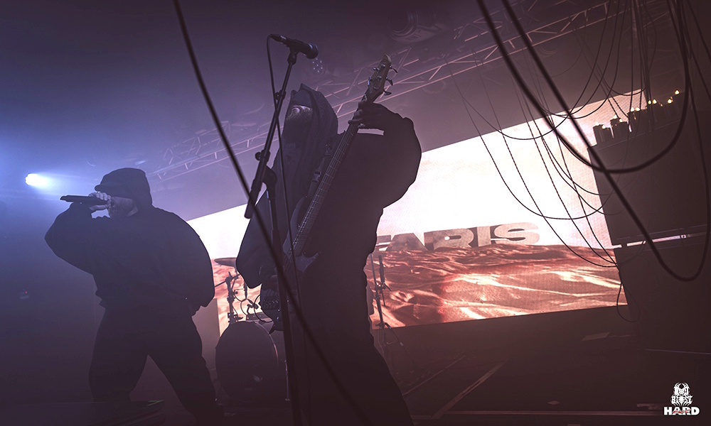 Avec un metalcore très froid, le groupe sort un premier album, « Aseara », en 2019, « Siwa » en 2023 et enfin le dernier, encore tout frais, « Nahar » en avril. SOLITARIS échange peu avec le public mais c’est pour mieux délivrer un concert rythmé et parfaitement enchaîné dans lequel les samples et une voix féminine éthérée introduisent chaque nouveau morceau. L’écran diffuse en alternance des paysages sombres et décharnés, des scènes plus abstraites et les phrases prononcées par cette voix de femme. Le tout, combiné au décor et aux costumes, fonctionne à merveille et c’est un vrai spectacle qui nous est offert. C’est sans compter bien sûr le son, d’une incroyable lourdeur et terriblement efficace. Les effets sur la batterie, en particulier la caisse claire, me plaisent beaucoup. Oui, c’est très produit mais c’est ce qu’on aime et le rendu est à la fois propre et violent, une frappe chirurgicale qui ne laissera pas vos tympans indemnes.