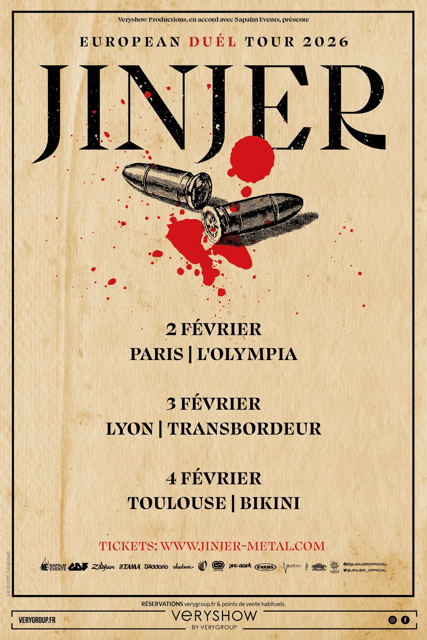 Fort de son nouvel album « Duél », le plus dynamique et ambitieux à ce jour, JINJER se prépare à libérer tout un mélange de précision technique, de lourdeur écrasante et d'intensité émotionnelle pour ses fans à travers le continent. Après des années de participation à des festivals internationaux et de tournées intensives, ce "Duél Tour 2026" est plus qu'une simple série de concerts, c'est un moment complet que les fans attendent avec impatience depuis la dernière tournée européenne du groupe en 2019.