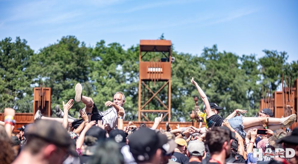 Si le kit de batterie de Danny Straßer peut paraître très humble à l’échelle de l’Altar, je pourrai par la suite constater son efficacité redoutable digne d’un rouleau compresseur sur "Kings ov Fire" par exemple. Ce qui me frappe avec ce groupe, c’est la volonté de prendre totalement la direction du set, les membres instrumentistes nous tournant le dos le temps d’une bande son d’introduction (sur le titre "Midtvinter"), avant l’arrivée du chanteur Lukas Nicolai. Lorsqu’ils se retournent d’un bloc et que "Obsessis a Daemonio" débute, ils viennent nous haranguer et communiquer une forte énergie conquérante. Malgré la chaleur écrasante, la foule répond à chaque invective de Lukas qui enchaîne avec fluidité d’impressionnants growls et de beaux cris aigus. Je note aussi le sublime chant clair du guitariste, alors qu’il nous est demandé de sauter en l’air. Le set se déroule sans temps mort, entre slams et circle-pits débridés, pendant que Lukas porte la main à son front pour mimer des cornes, ou se frappe la poitrine du poing à plusieurs reprises, comme possédé par son interprétation. En conclusion de ce set intense mettant en avant le dernier album du groupe, « Zwielicht », sorti en 2023, Lukas nous demande d’allumer les lumières de nos téléphones pour accompagner "Symphony Of a Dying Star". Un peu de poésie sur une bande son brutale !