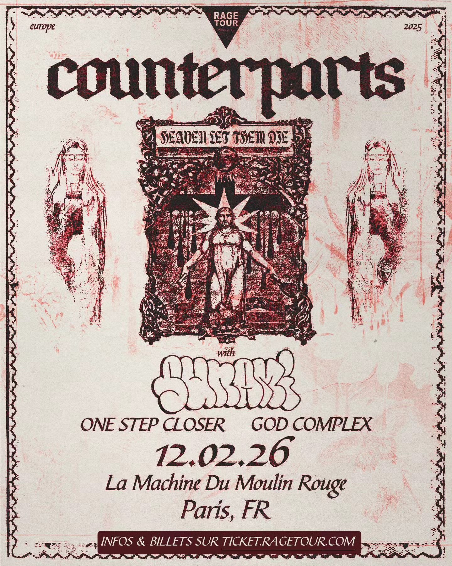 Mise en vente des billets le 10 Juillet à partir de 11h sur : Ticket.ragetour.com Counterparts.Live.2026