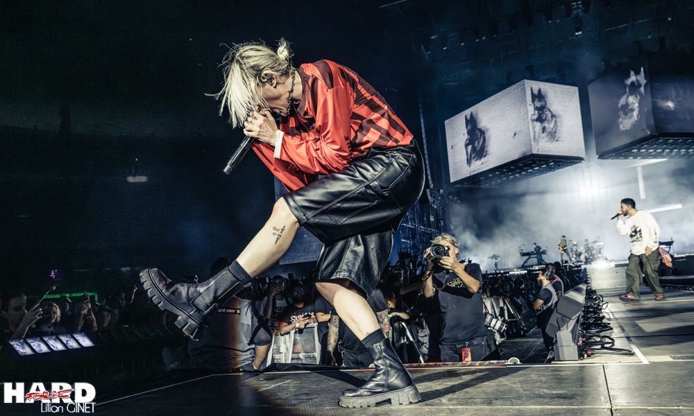 C’est devant une foule fébrile que le compte à rebours de LINKIN PARK approche de zéro, accompagné tour à tour par la bande son de la série Emily In Paris (plutôt bien adaptée à la soirée), puis par le générique du dessin animé Caillou (on comprend moins, mais soit). Soudain, celui-ci atteint zéro et l’intro déjà révélée à la Défense Arena huit mois plus tôt retentit. Les membres du groupe entrent en scène tour à tour, puis Emily Armstrong et Mike Shinoda déboulent pour "Somewhere I Belong" suivi de près par "Crawling", deux titres qui mettent les choses au clair : le groupe est fier de son héritage et des chansons auparavant portées par Chester Bennington. Mais il est aussi très fier du nouvel album « From Zero » dont le premier extrait, "Up From The Bottom" est déjà bien connu des fans, quelques mois seulement après sa sortie. "Lying From You" prend la suite et le public hurle tant et si bien le prénom d’Emily Armstrong que Mike Shinoda se voit contraint d’annuler son petit discours avant de lancer "The Emptiness Machine". Paris 1, discours 0 !