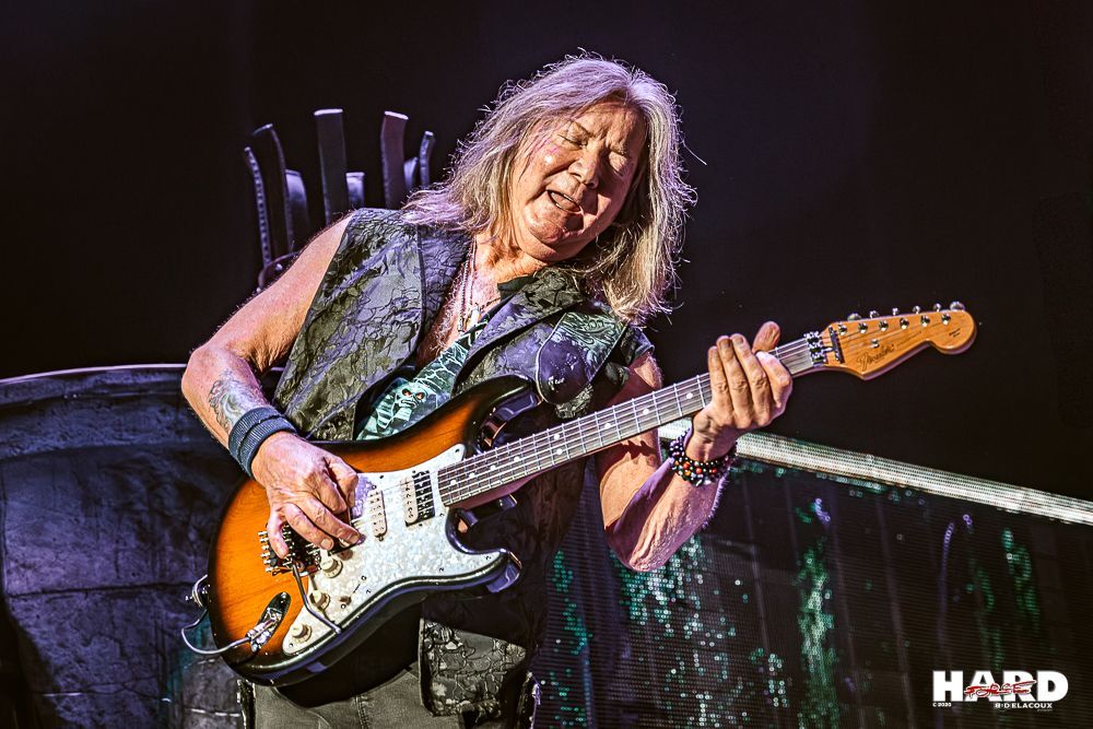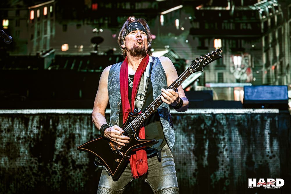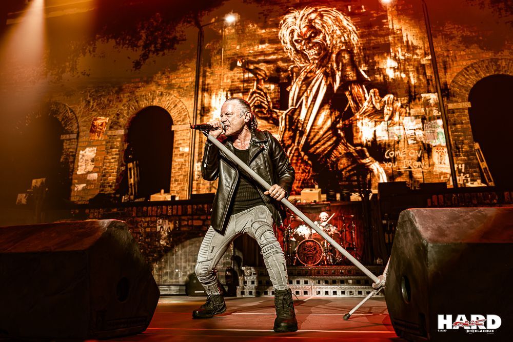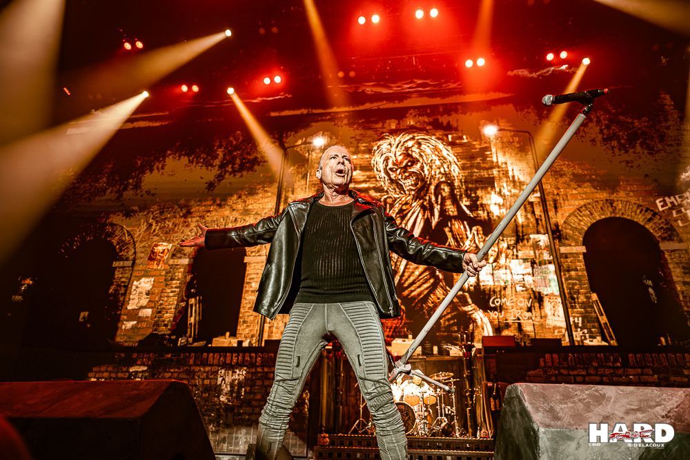 Le vrai cœur battant de ce show, à l'image de cette mise en scène jusqu'à la potence, c’est évidemment Bruce Dickinson. Entre deux chansons, il s’adresse au public dans un français touchant, avec l’humour et l’aisance qu’on lui connaît - citant au passage le vieux slogan télévisé d'un fromage à l'ail bien connu : hilarant ! Il saute, court, grimpe sur les plateformes comme si le temps n’avait aucune prise sur lui. Il s’empare de chaque morceau comme d’un monologue théâtral, et livre des performances vocales sans compromis, sans triche. Il module, rugit, rugit encore. Aucun signe d’essoufflement, pas même sur le final de "Seventh Son" où il tient une impression"note note près de 30 secondes. Quand il hurle le dernier refrain de Wasted Years, c’est Paris tout entier qui lui mange dans la main et hurle avec lui.