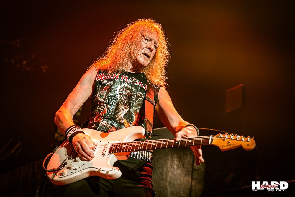 Un moment particulièrement chargé d’émotion survient lors de la présentation du nouveau batteur, Simon Dawson. Le groupe prend le temps de saluer l’immense Nicko McBrain, retraité pour raisons de santé mais toujours présent « dans nos cœurs et dans nos oreilles ». La standing ovation qui suit est spontanée, chaleureuse, bruyante. Simon Dawson, malgré la taille du vide à remplir, livre une performance très solide. Son jeu est net, puissant, rigoureux. Moins jazzy, moins subtil que celui de McBrain - certains breaks percutent droit sans détour là où Nicko aurait joué sur l’élan et la nuance, et les cymbales tintent de façon générale avec moins de finesse... mais Simon fait le job avec respect et conviction. Ce n’est pas un remplaçant. C’est un relais, qui laisse entrevoir un futur encore fourni pour IRON MAIDEN.