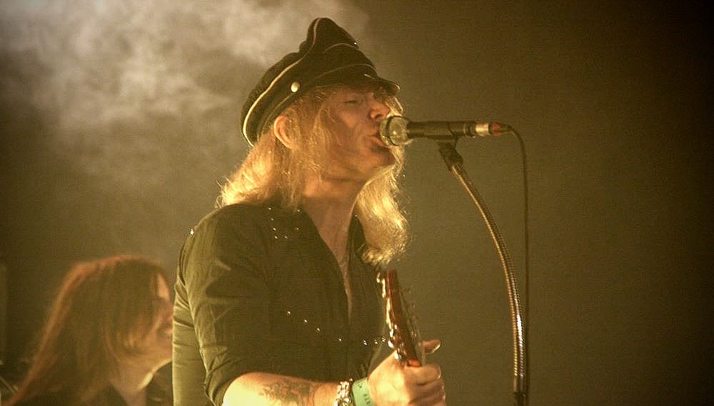 D’autres formations au riche passé, si elles ne négligent pas leurs chansons emblématiques, n’hésitent pas à se confronter à leur répertoire récent. Ainsi agissent THE HELLACOPTERS (Helldorado, 21h25 – 22h25) et MINISTRY (Helldorado, 23h20 – 00h25). Les premiers offrent un set rempli d’énergie hard rock, matinée de garage et de punk ("Soulseller"), avec des musiciens branchés sur 100 000 volts, à l’exception du discret claviériste. Nicke Anderson, dans sa tenue habituelle, passe outre quelques problèmes techniques pour se livrer sans retenue. Il colle son nez au micro, multiplie les poses complices avec son guitariste ou se jette au sol. Pas de discours, juste un enchaînement de titres pêchus avec trois extraits du récent et solide « Overdriver », dont la pochette – un potard réglé au max entouré d’éclairs – orne le backdrop. L’irrésistible boogie "Token Apologies" lance ainsi un bal endiablé puisque "The Devil Stole the Beat From the Lord". "Leave a Mark" est lui un morceau de bravoure où se succèdent soli de guitares et de claviers. Les heures anciennes des Suédois ne sont pas oublier : le concert ne s’achève-t-il pas, tout en fuzz et pédale wah-wah, sur le fondateur "(Gotta Get Some Action) Now!" après un détour seventies avec "Born Broke" ? Quand résonne le bruit d’hélicoptère final, les visages, sur scène et dans le public, sont radieux !