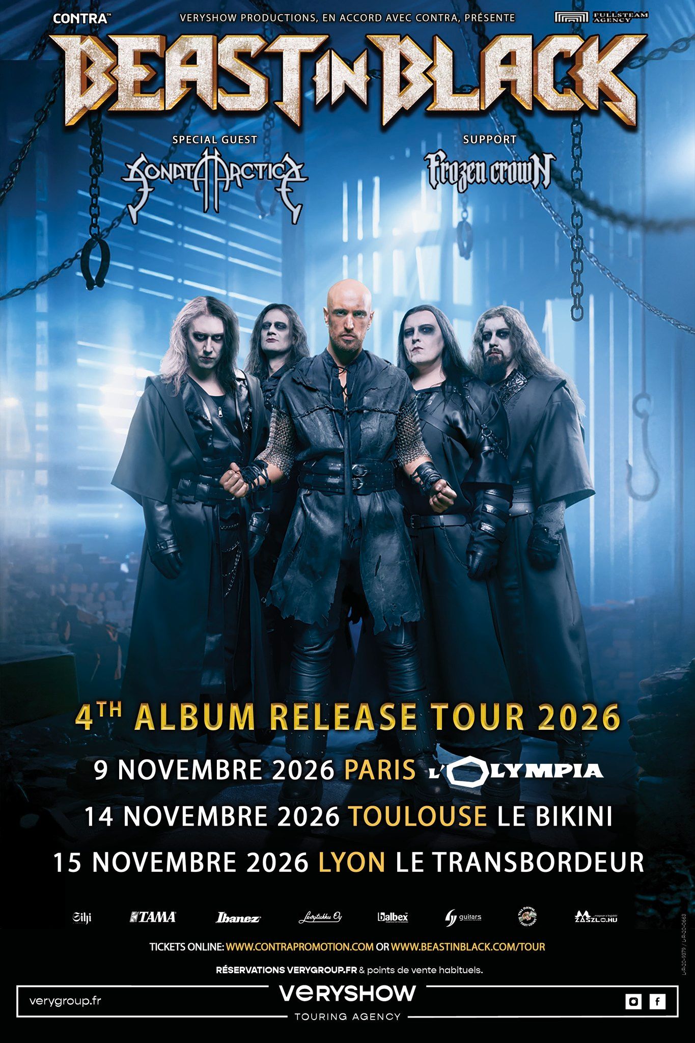 « Nous sommes plus que ravis d'annoncer notre tournée en tête d'affiche pour la fin de 2026, qui sera la présentation en direct du quatrième album de BEAST IN BLACK. SONATA ARCTICA en tant qu'invités spécial et FROZEN CROWN en ouverture de soirée, nous rejoindront dans ce voyage ; nous sommes enchantés de partager la scène avec ces groupes incroyables. Nous vous promettons un spectacle sans précédent de BEAST IN BLACK, et nous vous garantissons une soirée dont vous vous souviendrez toujours. » a déclaré le groupe.