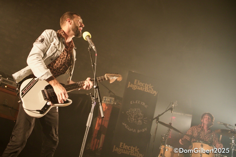 Un mot sur la première partie, ELECTRIC JAGUAR BABY. Un duo parisien guitare/batterie, les deux hommes se relayant au micro, et auteur de déjà trois albums, et autant de EP. En hommage à leur nom, les musiciens portent d’ailleurs une chemise panthère… ou plutôt jaguar. Et font un sacré barouf une demi-heure durant, sous l’œil appréciateur du public qui remplit convenablement le Café de la Danse lors de leur passage.