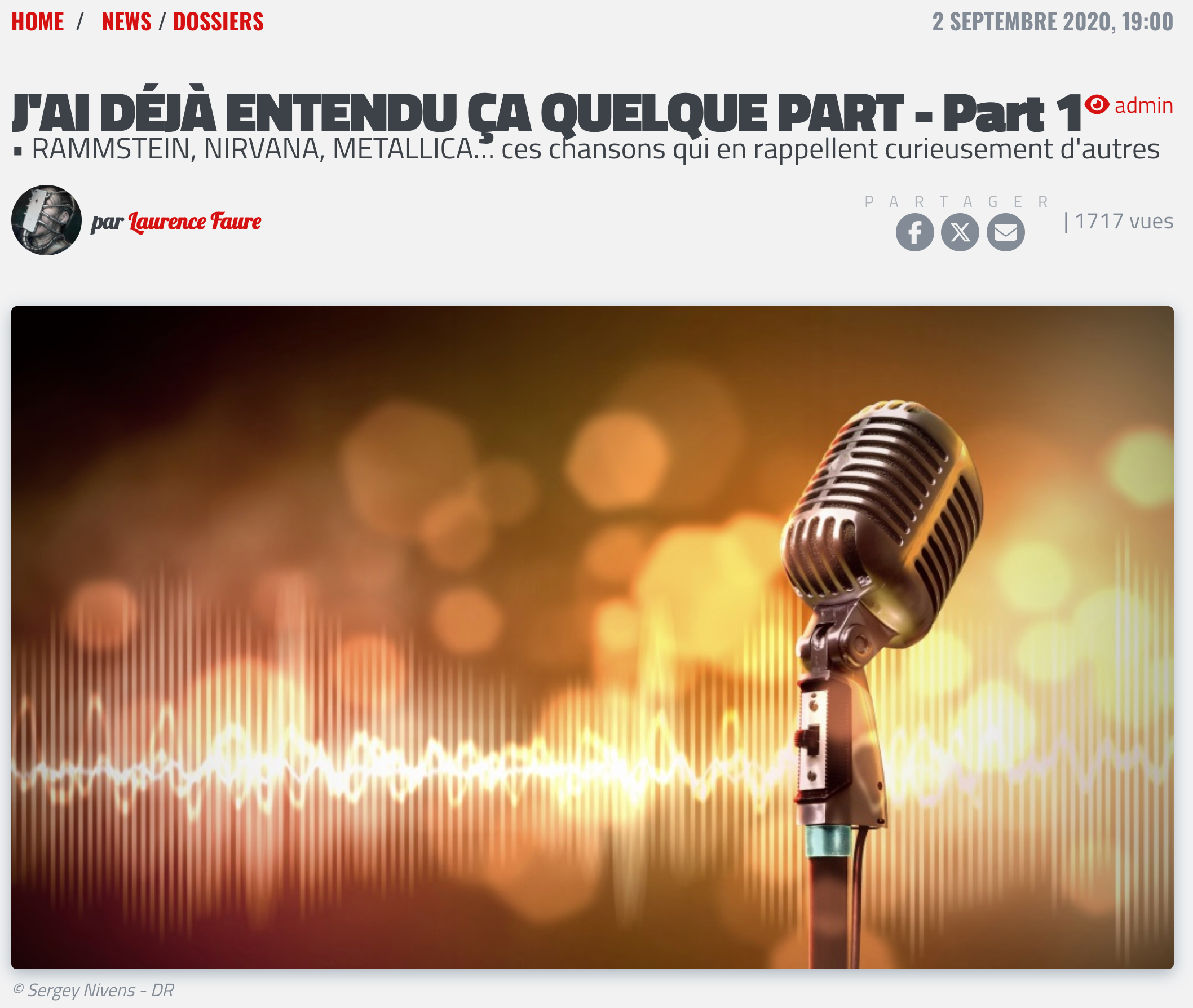 A l'occasion, je dépoussiérerai quelques sujets que vous n'aviez peut-être pas lus/vus à l'époque sur HARD FORCE. Ou que vous avez oubliés. Comme ces morceaux qui ressemblent étrangement à d'autres. Et pour le même prix (0 + 0 = la tête à Lolo), vous pouvez même accéder à la deuxième partie à la fin. Pour découvrir l'article, cliquez sur la photo. Vous y êtes.