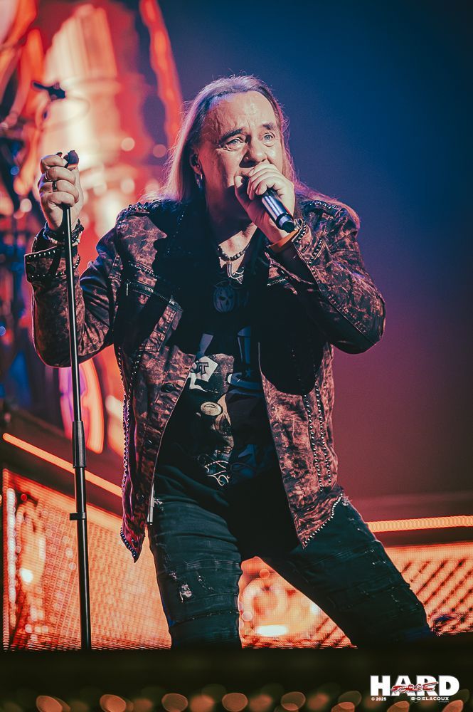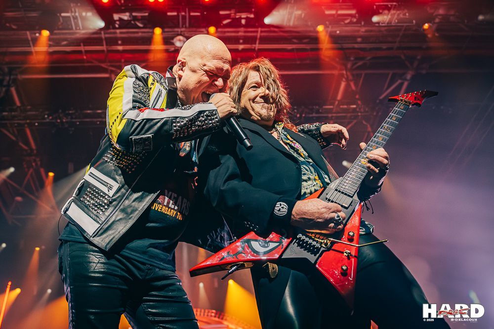 Au niveau du son, on en prend également plein les oreilles ! En effet, quarante ans de carrière ont donné à HELLOWEEN les clés d’un set absolument impeccable, enchaînant aussi bien solos de guitare qu’acrobaties vocales, et même un petit passage acoustique offert par Michael Kiske et Andi Deris qui offrent ainsi "In The Middle of a Heartbeat" et "A Tale That Wasn’t Right", pendant que « les autres sont partis fumer », blague Andi Deris. Ce dernier fait d’ailleurs le show avec de nombreuses blagues et tentatives de parler français, ajoutant une vraie proximité avec le public. Kai Hansen n’est jamais loin et s’il enchaîne les solos sur le devant de la scène, il a aussi droit à ses propres morceaux au chant, avec "Ride The Sky" et "Heavy Metal (Is The Law)". Bien sûr les hits sont aussi là : on passe de "I Want Out" à "Halloween" en toute fluidité, ne passant par "Keeper Of The Seven Keys" qu’à la fin du concert. Bref, avec ce show de HELLOWEEN, chaque fan du groupe a eu exactement ce qu’il attendait : un show grandiose retraçant la longue et prestigieuse carrière de nos citrouilles préférées. Vivement les cinquante ans pour remettre ça !