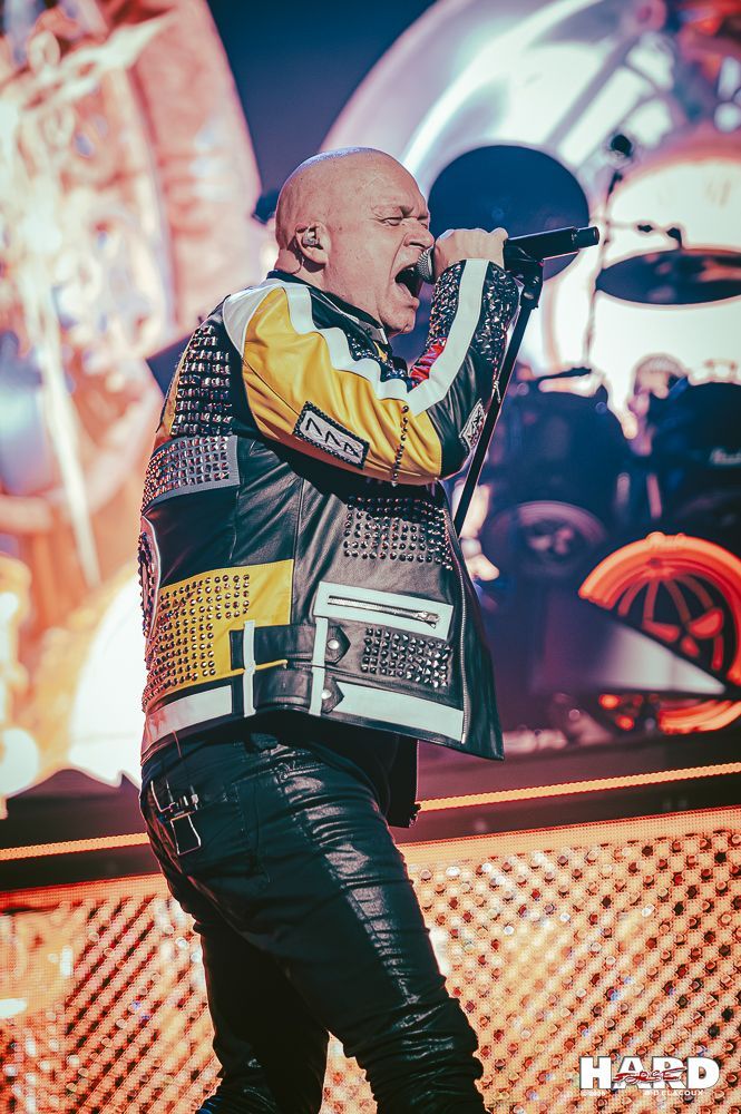 Vient enfin le moment pour HELLOWEEN de célébrer ses quarante ans de carrière avec son public français ! Après une intro mystérieuse et impressionnante à base de lasers et d’écrans bien synchronisés, les citrouilles se lancent sur scène comme des diables hors de leur boîte et lancent "March Of Time" devant un décor digital d’horloge-citrouille de toute beauté. Le groupe, tout de même composé de sept membres, occupe tout l’espace, ne laisse personne sans rien à regarder pendant bien longtemps, et crée une émulation collective qui fait très vite monter l’ambiance. Pour "The King for a 1000 Years", le décor se fait plus grandiose encore, avec un grand château en 3D rempli de détails, avant d’entrer dans la nef d’une cathédrale pour continuer dans le spectaculaire. Il n’y a pas à dire, on en prend plein les yeux avec ce show ! Certains titres sont introduits par le Gardien des Sept Clés, mascotte du groupe depuis des décennies, sur les écrans géants pour le plus grand bonheur des fans. Un peu plus tard, les lancers de confettis s’enchaînent et le public a même droit à une gigantesque citrouille gonflable au-dessus de lui pendant le traditionnel "Dr. Stein".