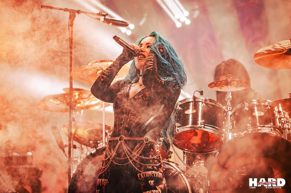 Si on l’a connue peu volubile sur les tournées précédentes, Alissa White-Gluz a cependant décidé de communiquer avec le public ce soir, ne laissant aucun blanc sur les passages instrumentaux. Elle demandera (en français, étant québécoise) au public de chanter avec elle, de taper dans ses mains, et de headbanger de temps en temps. Celui-ci s’exécutera, donnant une belle ambiance dans la foule, mais dans les gradins, avec le recul, on aurait aussi aimé profiter des riffs. Au niveau de la set-list, rien à redire, les hits sont tous joués, "Ravenous", "War Eternal", "The Eagle Flies Alone", "Nemesis"… Ainsi que les meilleurs titres de « Blood Dynasty », de « Dreamstealer » au morceau éponyme, en passant par la reprise de "Vivre Libre" de BLASPHEME, il y en a pour tous les goûts.