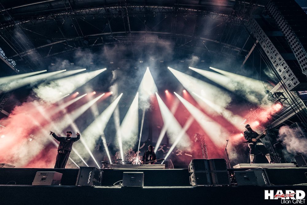 Vitia : Mais on voulait résolument avoir un album plus urbain, parce que ça nous caractérise plus. Il faut savoir que « Legacy Of Shi » et « Showdown », notre deuxième et notre troisième album, étaient censés sortir de manière beaucoup plus rapprochée, mais en plein milieu il y a eu un truc assez chiant qui s’appelait la COVID. Et ça a empêché cet écho et cette résonnance, en termes d’album et de discographie, de se mettre en place. Donc au moment où on défendait « Showdown », l’album était prêt depuis quasiment deux ans ! Quand on le défendait sur scène, il y avait une sorte de frustration artistique. En tout cas, moi, je l’ai beaucoup ressentie. Même si on kiffe cet album, en termes de scénographie et de visuels, j’étais déjà passé à autre chose et j’avais envie d’en découdre. En termes de son, on savait déjà naturellement où on voulait aller, mais il y avait une certaine frustration. Du coup on est très contents que ça arrive, et c’est pour ça que l’album arrive vite, parce qu’il y avait une vraie urgence dans la composition. Moi j’avais une vraie envie d’écrire, de composer, et c’est un album qui a en partie été composé chez nous, mais aussi sur la route.