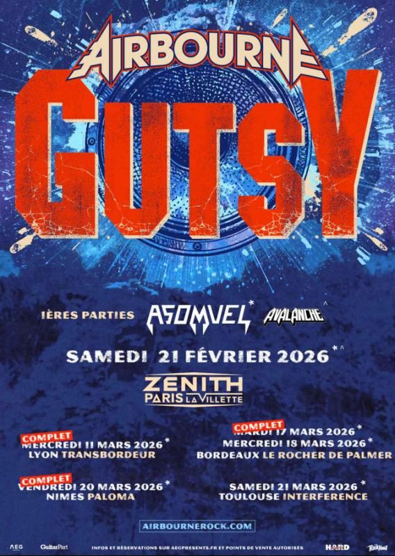 Au fil les années AIRBOURNE a gagné le respect et l'amour du public français grâce à son énergie débridée. Tous ceux qui ont déjà eu le plaisir de voir le groupe en concert savent pertinemment qu'il ne fait jamais les choses à moitié ! Après un passage au Hellfest une fois de plus mémorable, et une tournée française archi complète, AIRBOURNE sera de retour dans l'hexagone au début de l'année prochaine, pour faire vibrer les foules. En plus d'un passage par le Zénith de Paris le samedi 21 février, le quartet donnera 5 concerts en province dont 3 affichent déjà "complet" : le 11 mars à Lyon (Transbordeur), le 18 mars à Bordeaux (Le Rocher de Palmer), le 20 mars à Nîmes (Paloma) et le 21 mars à Toulouse (Interférence) - Une tournée AEG Presents France en partenariat avec HARD FORCE dont la billetterie est ouverte en suivant ce lien : Airbourne2026