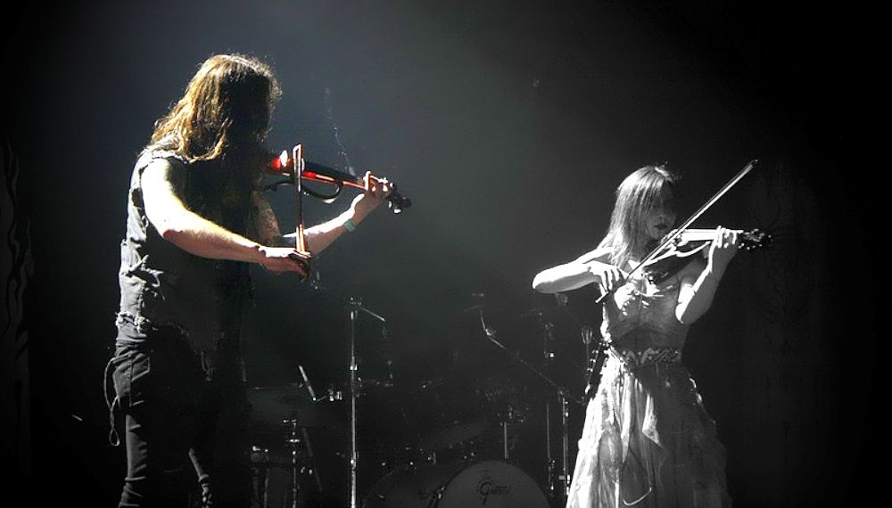 Corpse-paint et vêtements sombres déchirés, les membres de FIRTAN semblent sortis d’un improbable mélange entre Mad Max et La Nuit des Morts-Vivants. La violoniste, robe blanche laissant bras et épaules nus, évoque une âme possédée par la musique de ses comparses, un fantôme tissant des notes mélodieuses au fil de son archet. Entre black et pagan, le quintette allemand oscille entre passages atmosphériques ("Hrenga" en introduction vaporeuse, "Wenn Sich Mir Einst Alle Ringe Schliessen", magnifique conclusion instrumentale à deux violons) et décharges d’agressivité ("Wermut Hoach Am Firmament") dans une quasi obscurité rompue par des lumières blanches et bleues. Le groupe, féru de headbanging, assène ses chansons avec une réelle conviction, entraînant sans mal les spectateurs dans son riche univers aux éclats ténébreux.