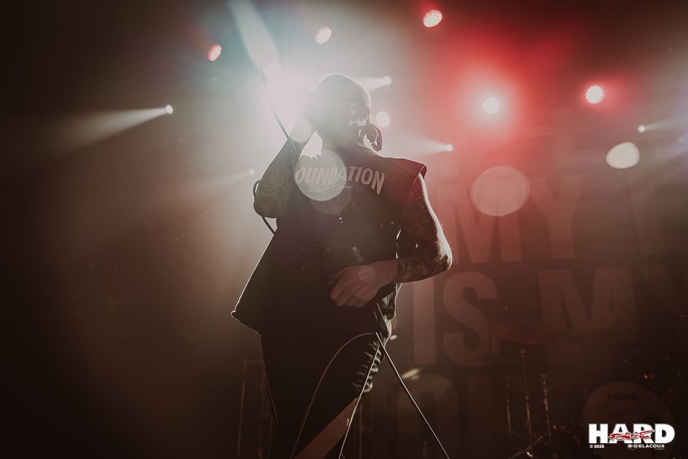 Après presque 25 ans de carrière, STRAY FROM THE PATH a explosé en popularité ces dernières années, notamment grâce à des tournées avec BEARTOOTH, SPIRITBOX, MOTIONLESS IN WHITE ou encore MAKE THEM SUFFER. C’est donc devant un public arborant les t-shirts de tous ces groupes que Anthony Altamura, Craig Reynolds, Drew Dijorio et Thomas Williams montent sur scène, triomphants. Sans qu’on puisse s’y préparer, on prend "Kubrick Stare" en pleine poire, et quelques personnes au passage. Les moshs s’enchaînent au rythme du flow ininterrompu de Drew, hurlant les backs comme à un concert de rap. Les paroles engagées du groupe trouvent un écho particulier dans le public de ce soir, notamment lorsque Drew s’époumonne sur "Fuck Them All To Hell" après avoir encouragé le public parisien à battre Lille, sur lequel (selon lui) il y avait eu plus de 100 slammeurs ! Et vu le monde qui s’élance vers la scène avant de se jeter dans le public, on n’a pas dû être très loin de leur score ! Les deux derniers albums du groupe sont à l’honneur, plus d’actualité que jamais, à l’image de "Can I Get Your Autograph?", missile métaphorique à peine dissimulé pour David Draiman de DISTURBED.