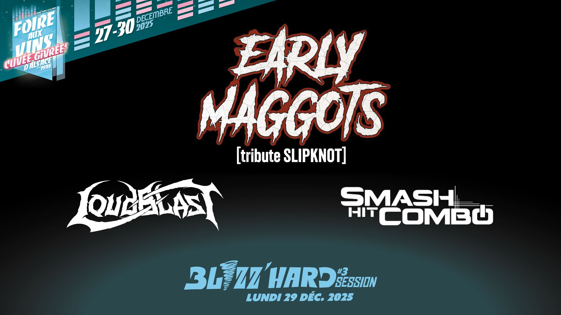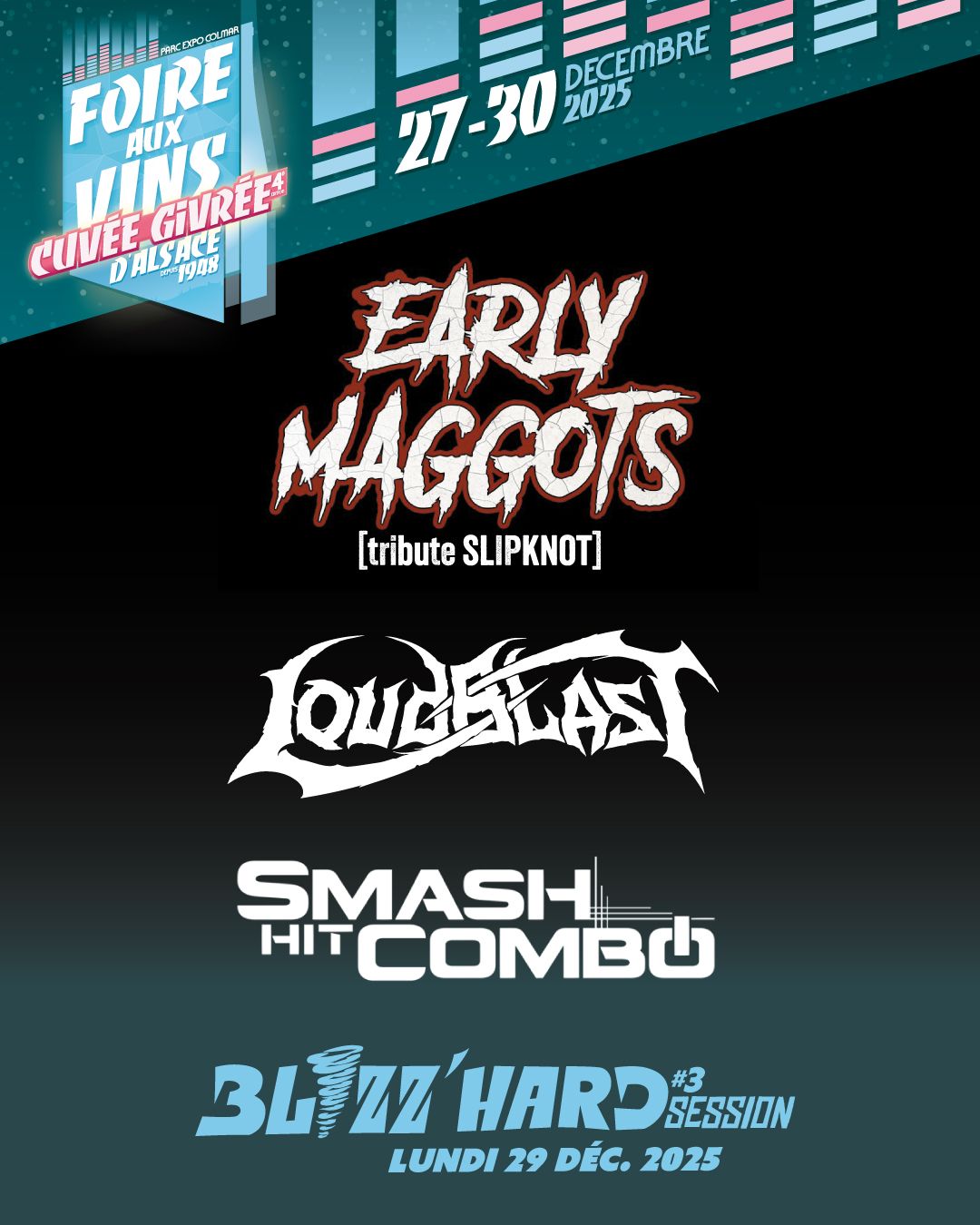 C'est le 29 décembre à partir de 17h30 (ouverture des portes), que la Blizz’Hard Session fera son retour pour les amateurs et amatrices de metal avec une 3e édition qui sera composée de LOUDBLAST, SMASH HIT COMBO et une fin de soirée avec EARLY MAGGOTS, le tribute-band à SLIPKNOT !
