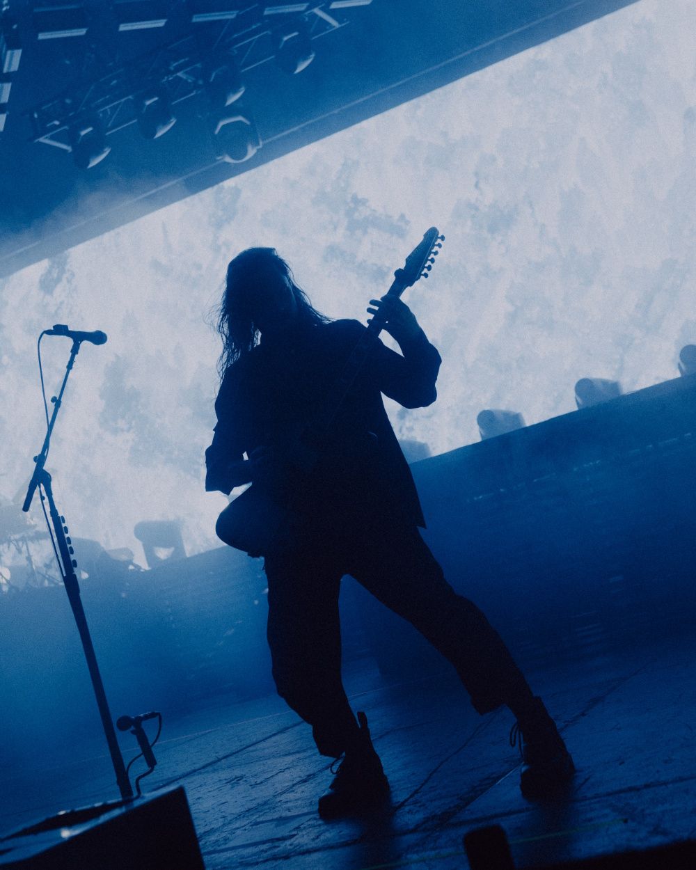 Il est temps pour BAD OMENS de prendre la scène. C’est avec un show d’écrans grandiose que Noah Sebastian et sa bande (dont les membres sont très en retrait derrière leur frontman) prennent le contrôle de la mythique salle de la Villette. Le set, entrecoupé de bandes aussi mystérieuses qu’incompréhensibles (le mixage du son ne permet pas de bien distinguer ce qui y est dit) est divisé en 5 actes et représente très largement « The Death Of Peace Of Mind » et « Concrete Jungle [The OST] », les deux derniers albums du groupe, en plus de présenter pour la première fois en France les quatre nouveaux singles. Comme envoûté, le public rugit d’une seule voix et on observe les premiers pogos qui explosent loin derrière les barrières (on suppose que les vingt premiers rangs sont composés de fans hardcore ne voulant pas perdre leur place).