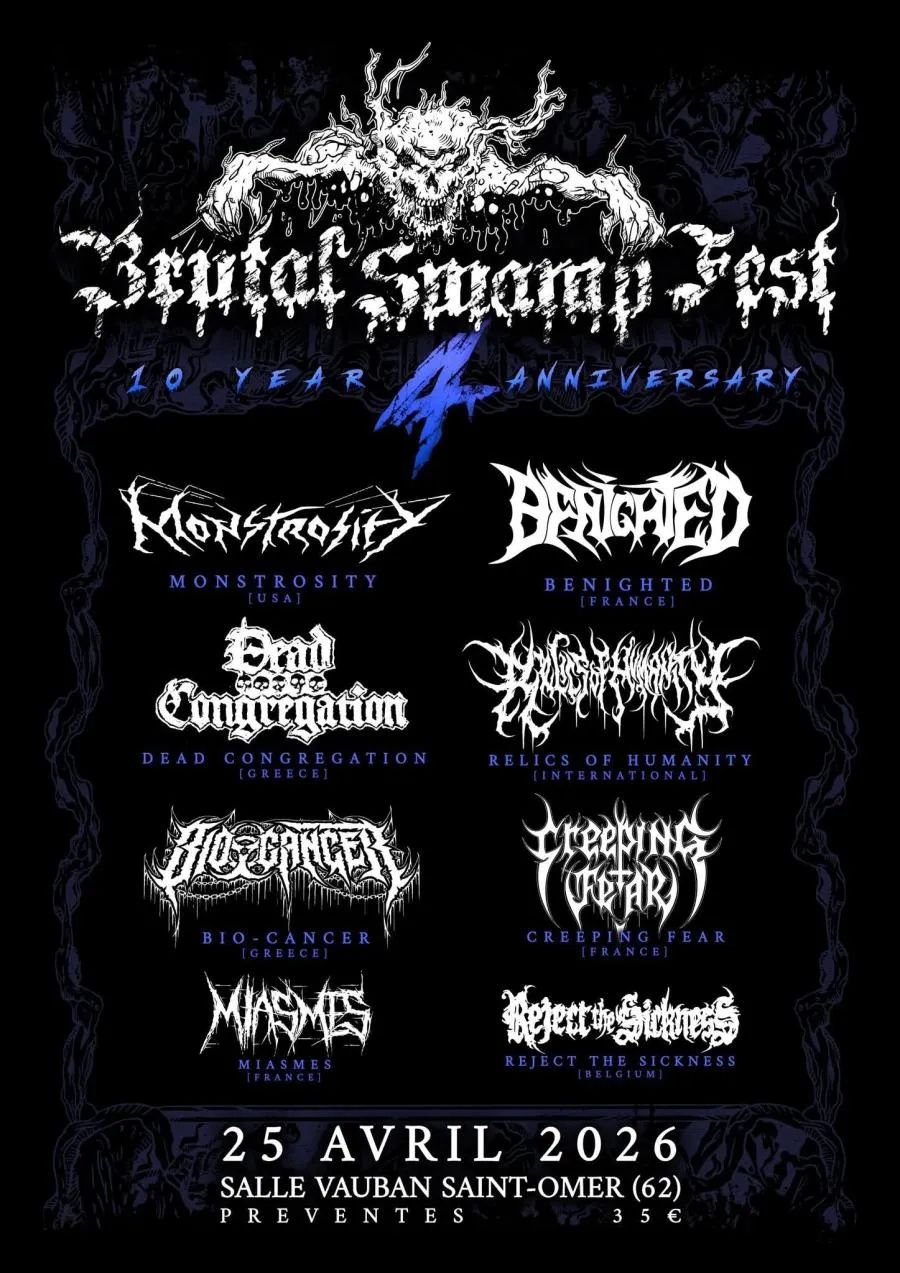 Pour seulement 35€, retrouvez la billetterie sur ce lien : Brutal-Swamp-Fest-2026 - Rejoignez la page Facebook du festival ici : Facebook.com/BrutalSwampFest