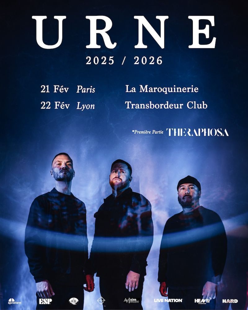 Retrouvez URNE le 21 février 2026 à Paris, La Maroquinerie, et le 22 à Lyon au Transbordeur Club avec THERAPHOSA en première partie. La billetterie pour ces deux concerts partenaires HARD FORCE et HEAVY1 est accessible ici : Urne-Tickets