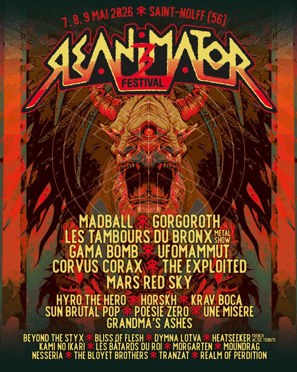 Le Re-Animator Festival, petit frère du Motocultor Festival, vous donne rendez-vous pour sa 3e édition à Saint-Nolff (Le Vieux Moulin), du 7 au 9 mai 2026 !