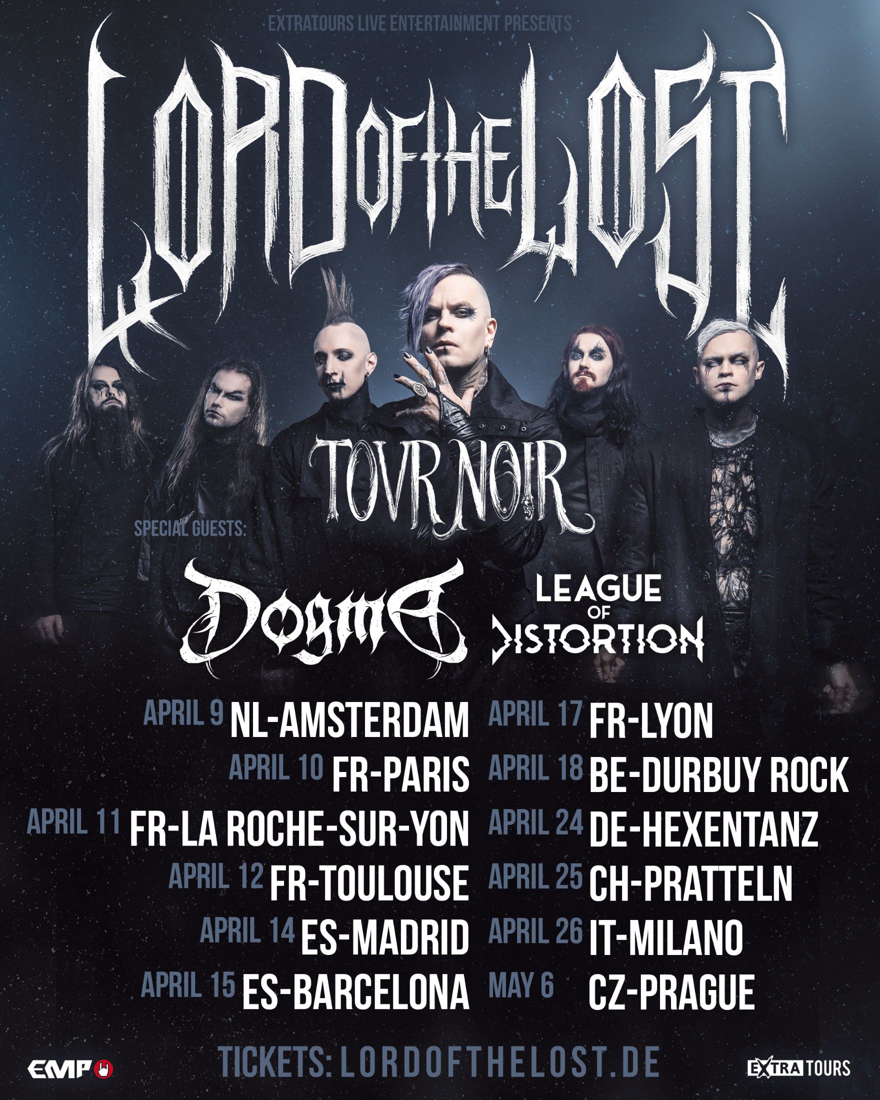 Avec près de 500 000 auditeurs sur Spotify, sa participation à la finale de l'Eurovision en 2023, suivie d'un album numéro un et de tournées internationales avec IRON MAIDEN, LORD OF THE LOST s'impose comme l'un des groupes les plus populaires de la scène actuelle. « Opvs Noir Vol. 3 » représente l'apogée créative d'un groupe dont le répertoire ne laisse aucune place à la stagnation. L'année a commencé par des concerts aux États-Unis, au Canada et en Australie, et se poursuit maintenant avec la prochaine tournée européenne qui débutera le jeudi 12 mars à Oslo, en Norvège, et passera par Paris, La-Roche-Sur-Yon, Toulouse et Lyon.
