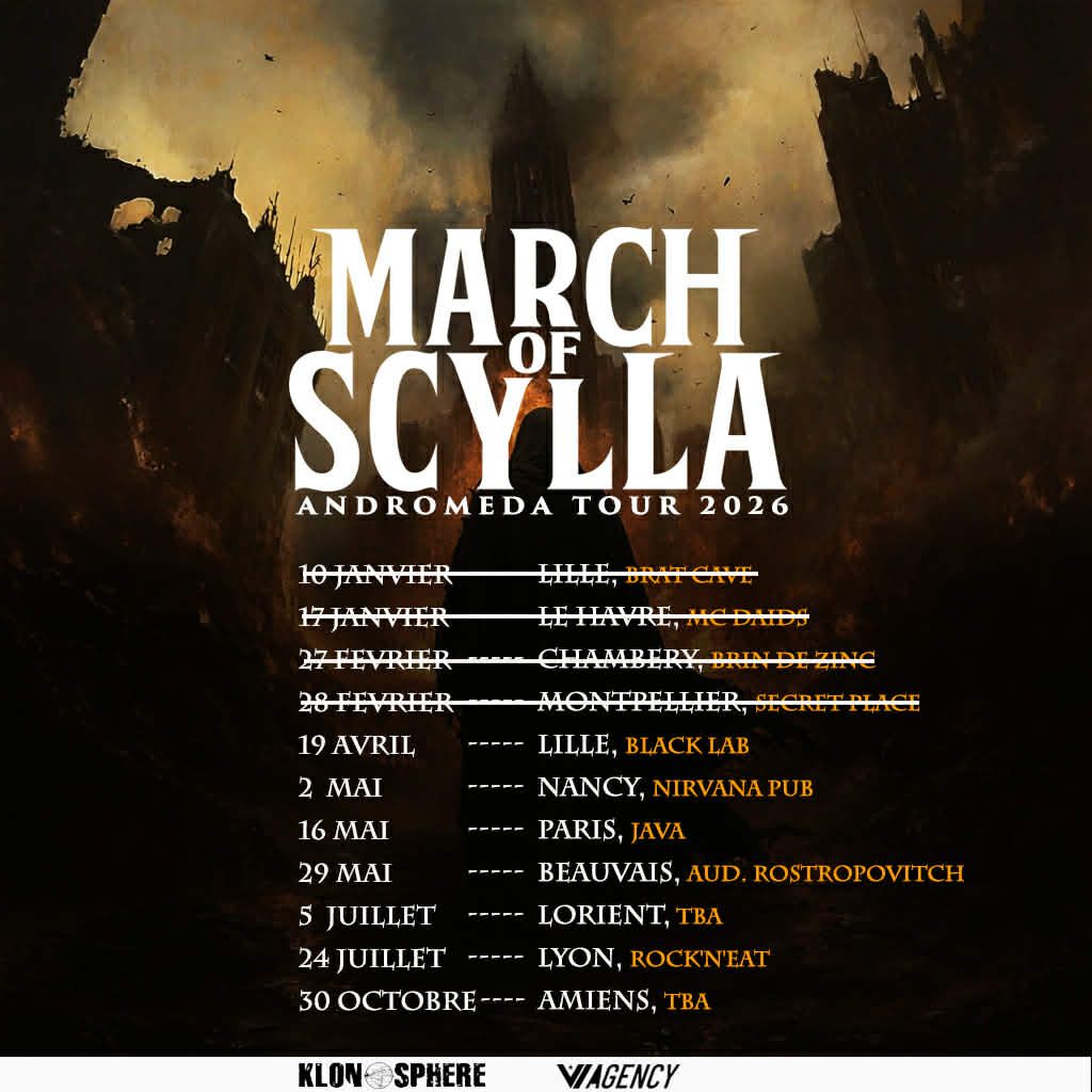 MARCH OF SCYLLA continue sa progression en France avec de nouvelles dates à voir sur l'affiche sous la vidéo, et annonce son retour à Paris le 16 mai !