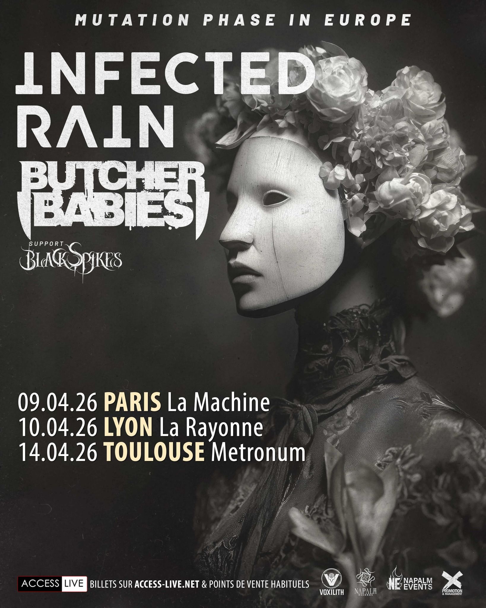Cette sortie arrive quelques jours avant que le groupe ne prenne la route pour sa tournée "Mutation Phase In Europe", en co-tête d'affiche avec BUTCHER BABIES et BLACK SPIKES en première partie. Débutant le 25 mars à Glasgow, cette tournée fera escale à Paris le 9 avril (La Machine du Moulin Rouge), Lyon le 10 avril (La Rayonne) et Toulouse le 14 avril (Le Metronum). 3 bonnes occasions de (re)découvrir INFECTED RAIN en live, avec un mélange de titres phares et de chansons inédites !